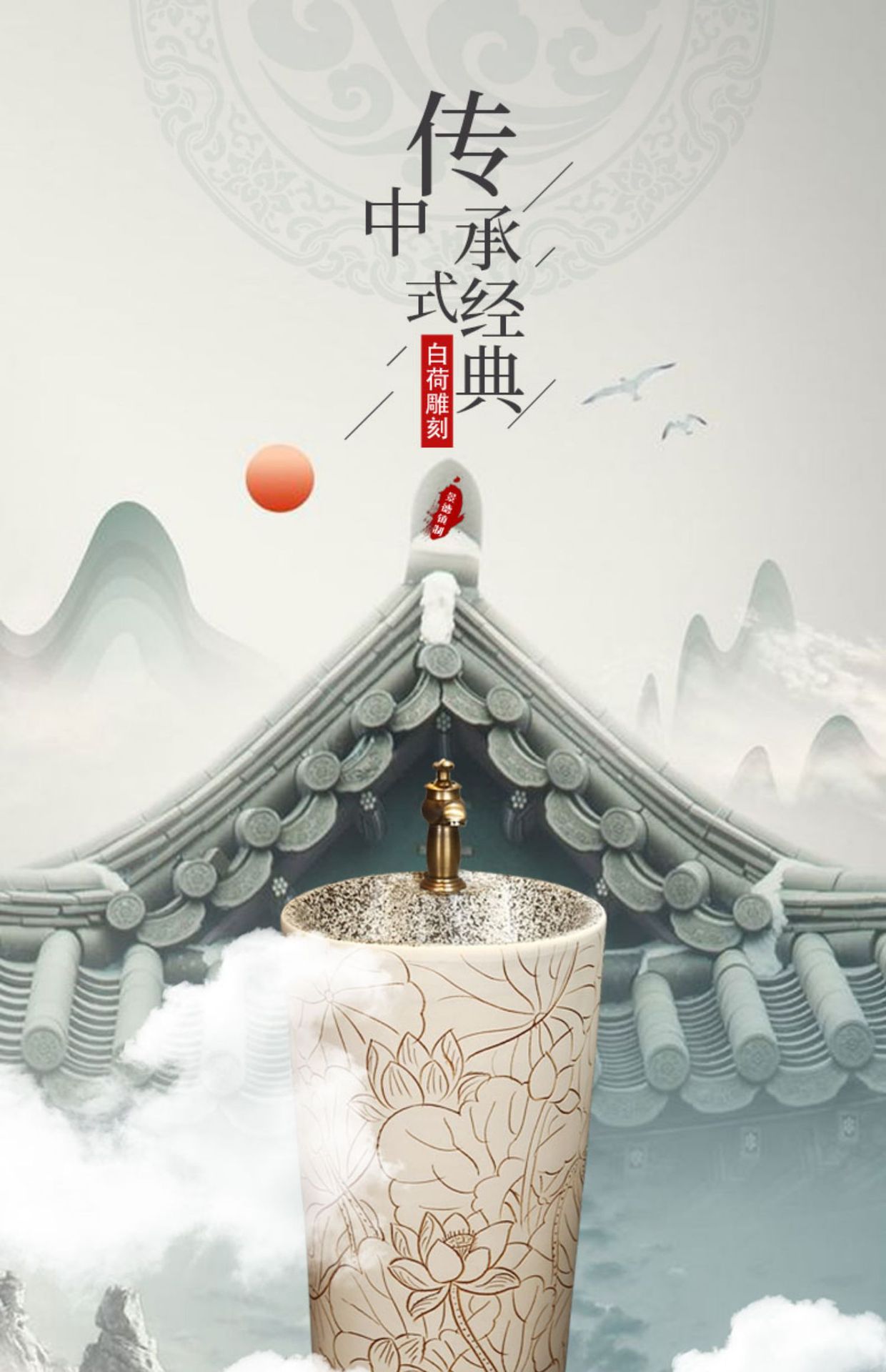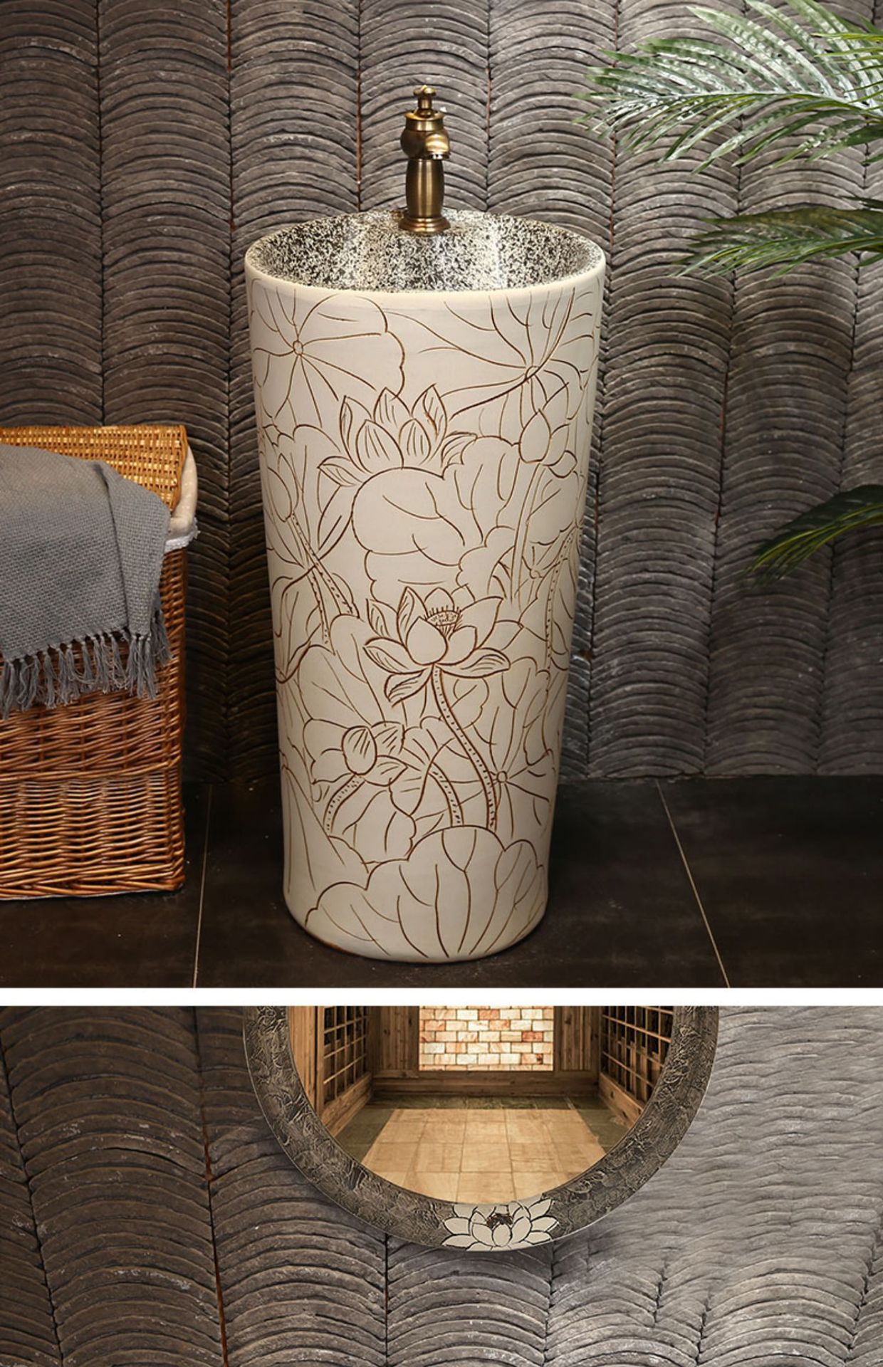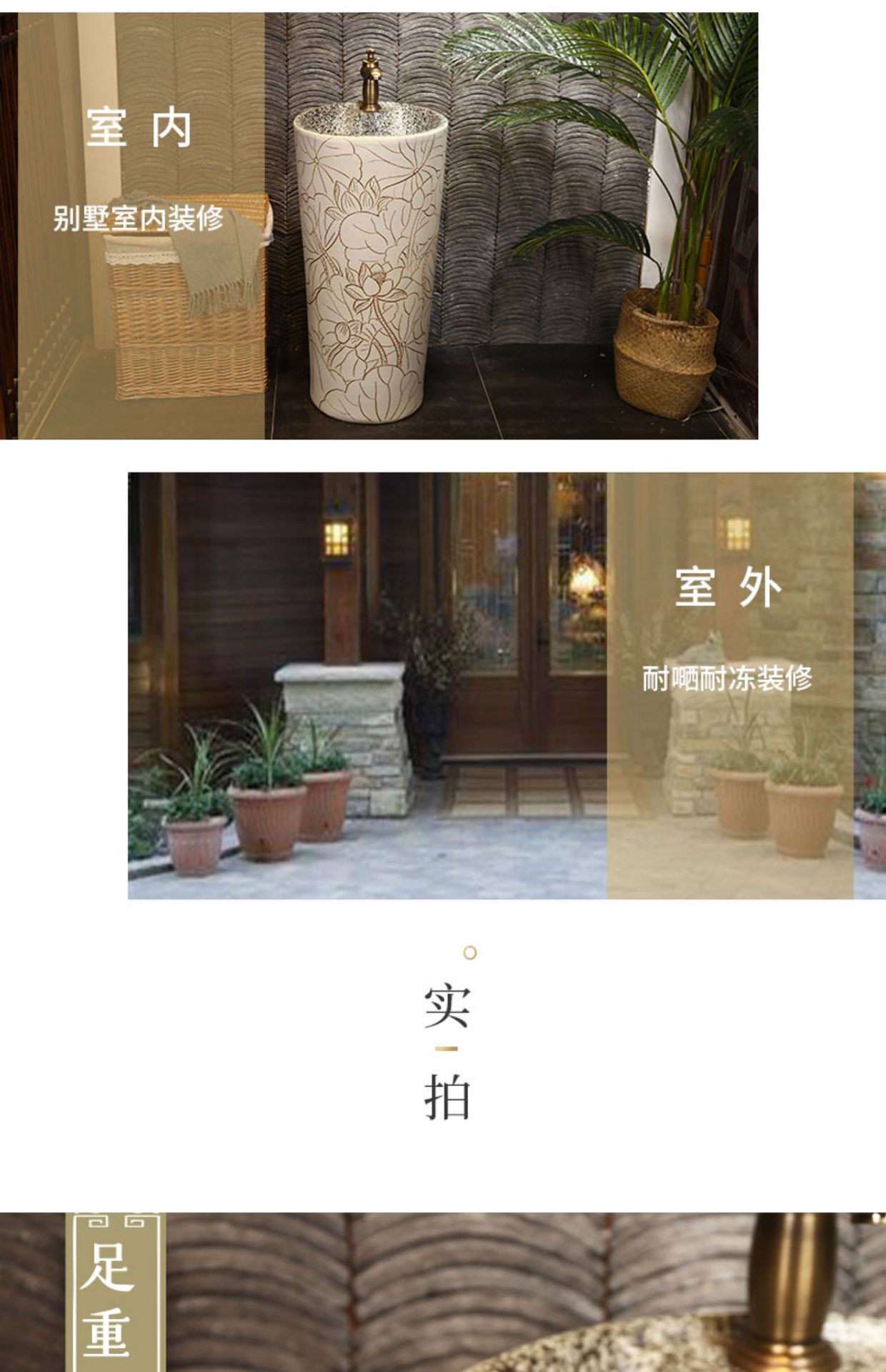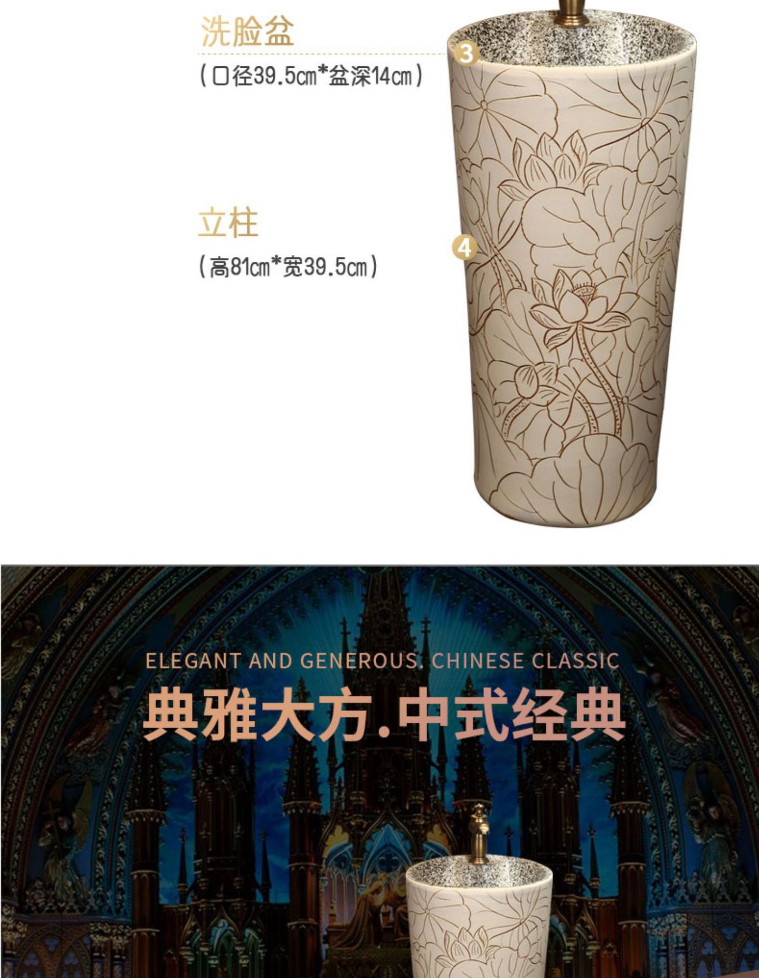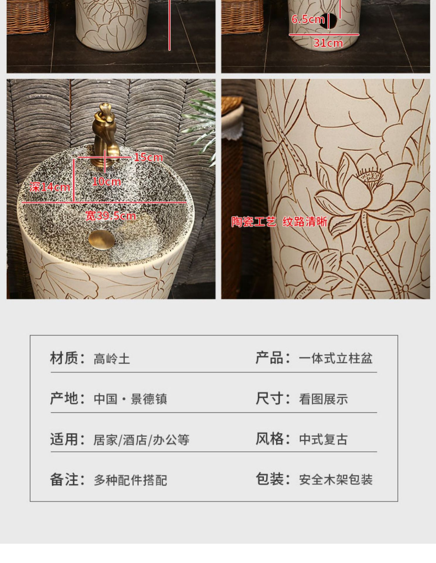 景徳鎮中国式彫刻芸術立柱盆陶磁器立柱式洗面器一体屋外洗面器洗面池