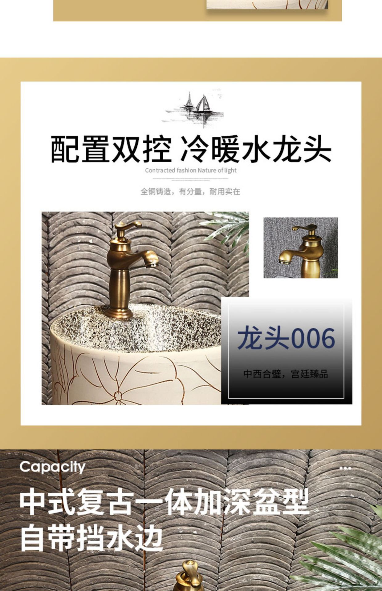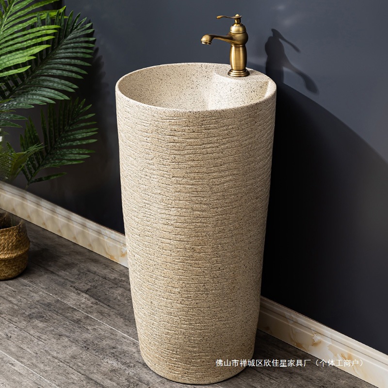 陶磁器一体床置き式立柱洗面器レトロ芸術民宿家庭用洗面器ベランダ池立柱盆