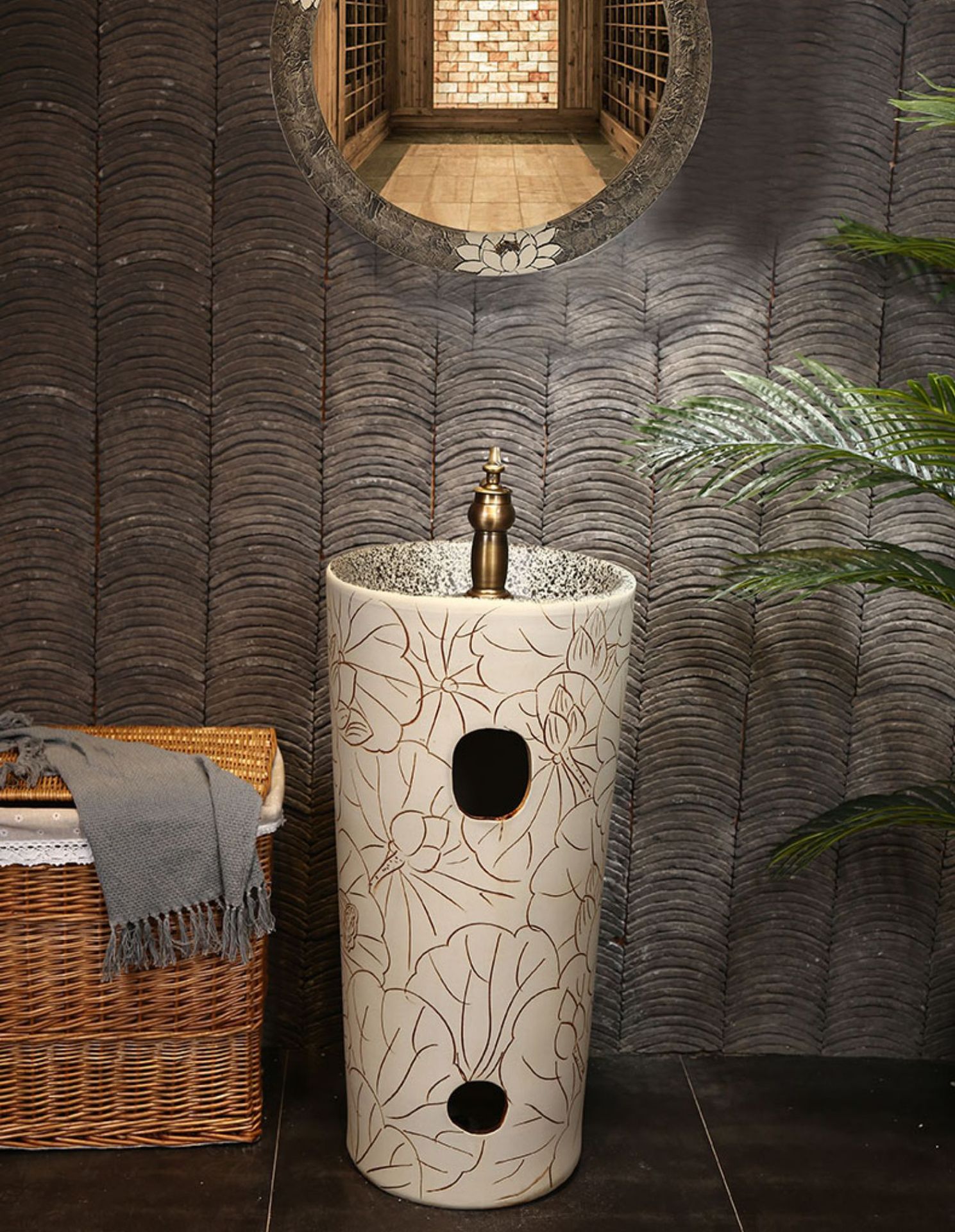 屋外バルコニーガーデン一体型柱状景徳鎮陶器洗面器、日焼け止め・凍結防止、ホテル・民宿用洗面器