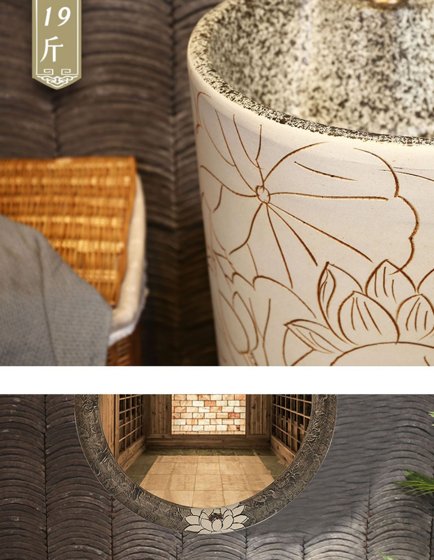 仕様 ハスの花を彫る柱盆 (部品を含まない)