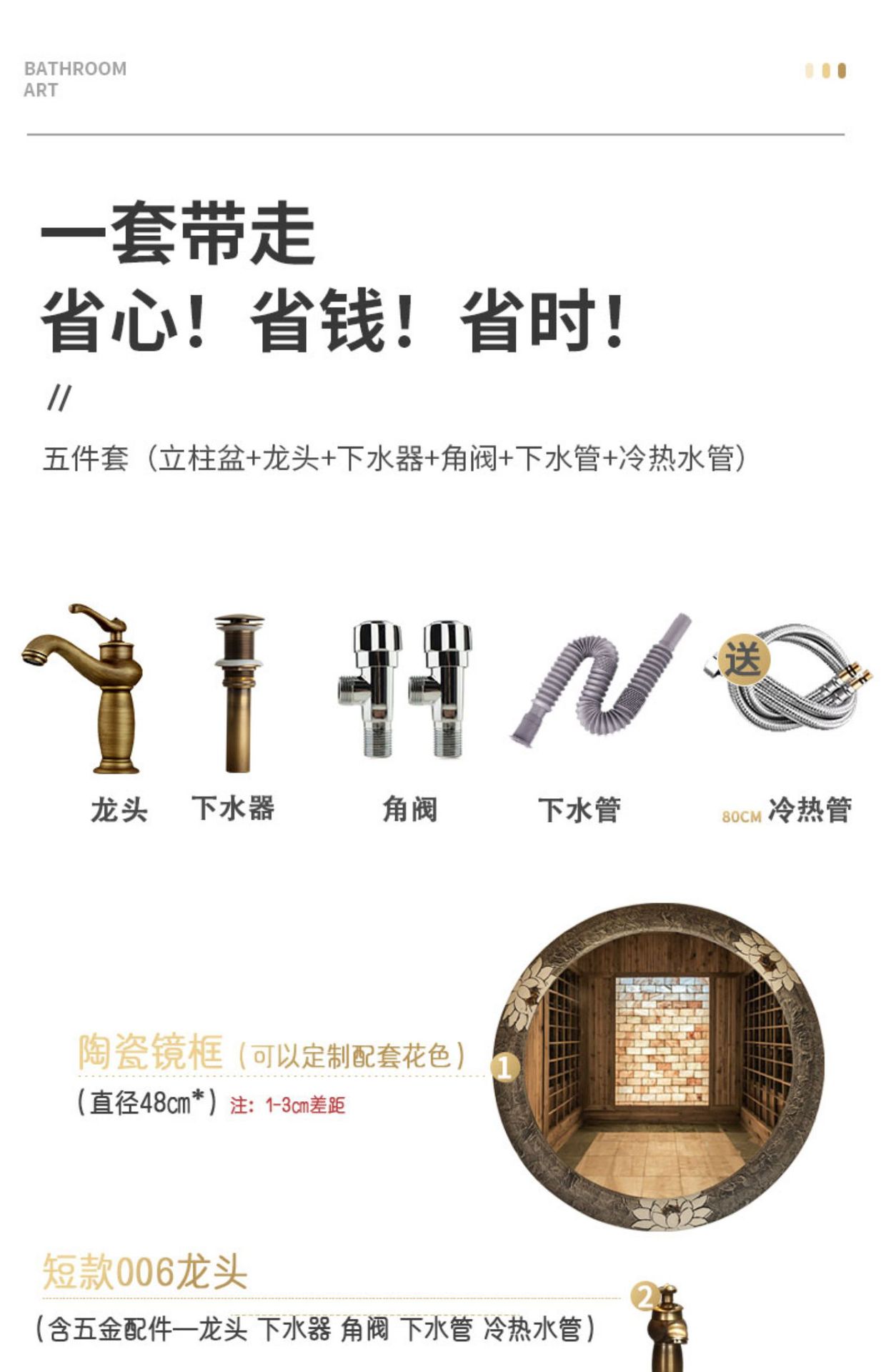 コラム洗面器セラミック洗面器小スペースバルコニー屋外洗面器一体型コラム洗面器床置き洗面器アンティーク
