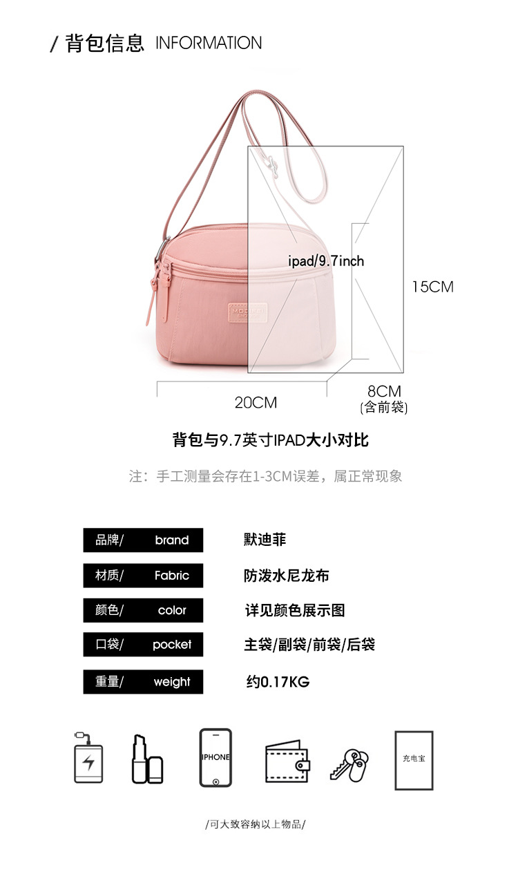モルディフィ2025新作 レディース ショルダーバッグ 斜めがけバッグ ナイロンバッグ 女性用バッグ 韓国風 シンプル 無地 軽量 ショルダーバッグ