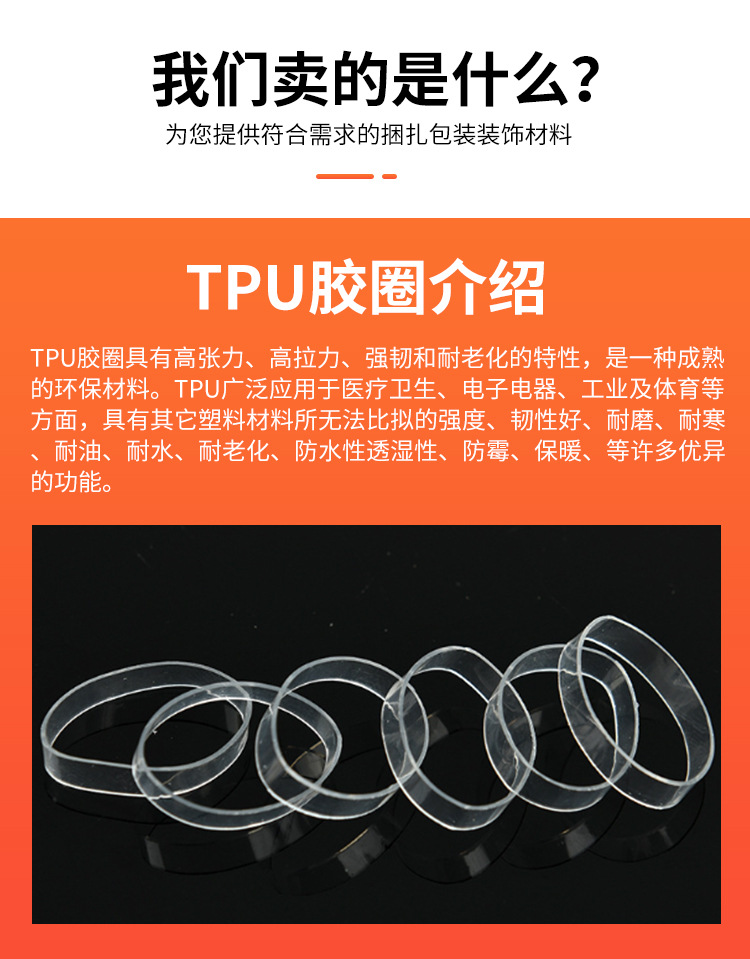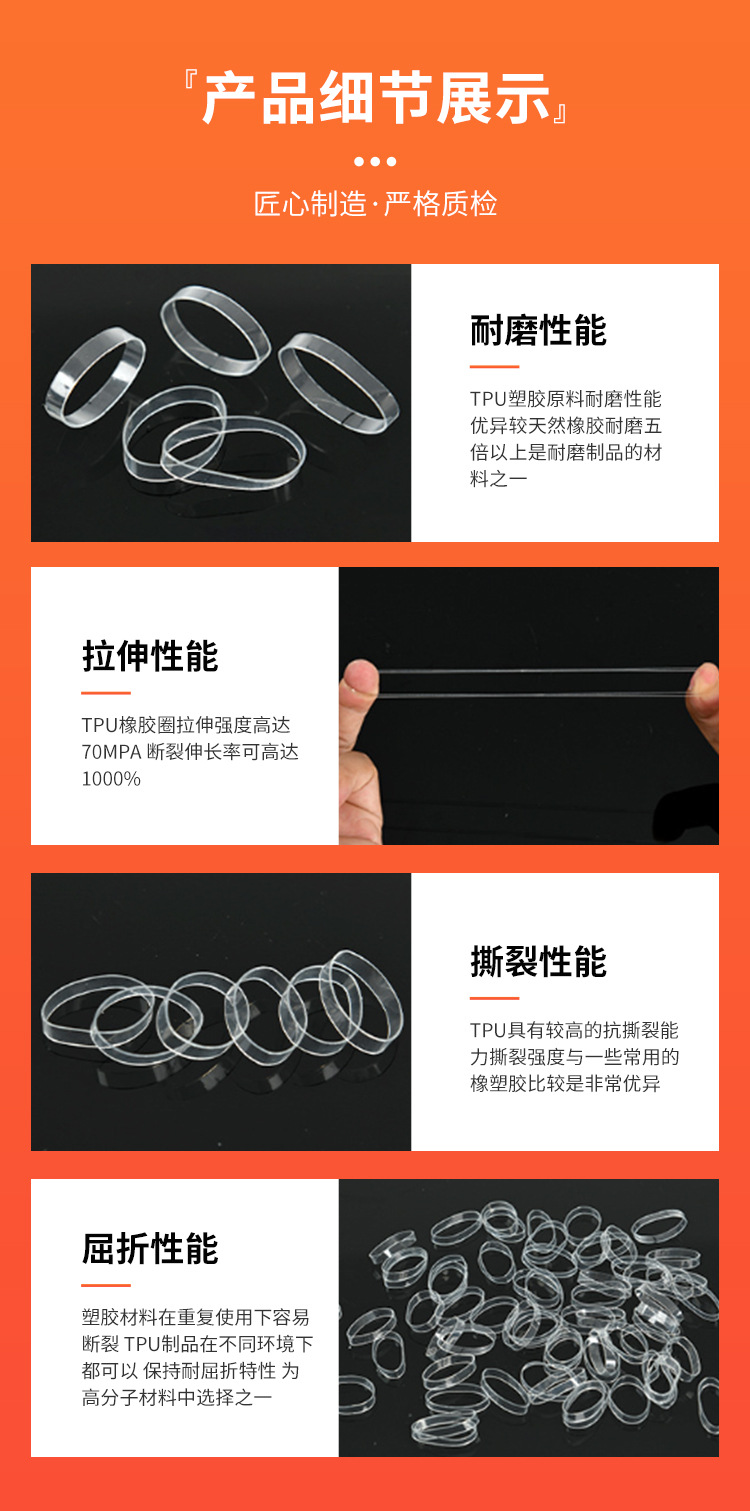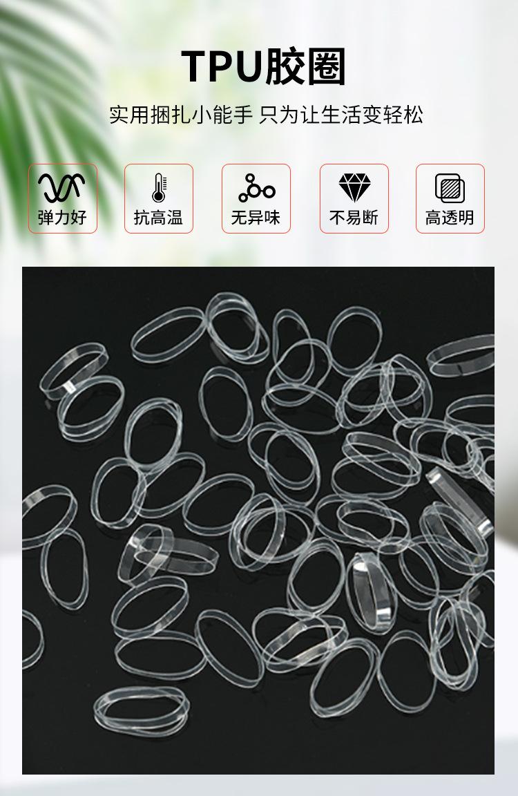 メーカーは高温 TPU ゴムリング、幅広ゴムリング、TPU 老化防止透明ゴムリング、透明 TPU ゴムバンドを供給しています。