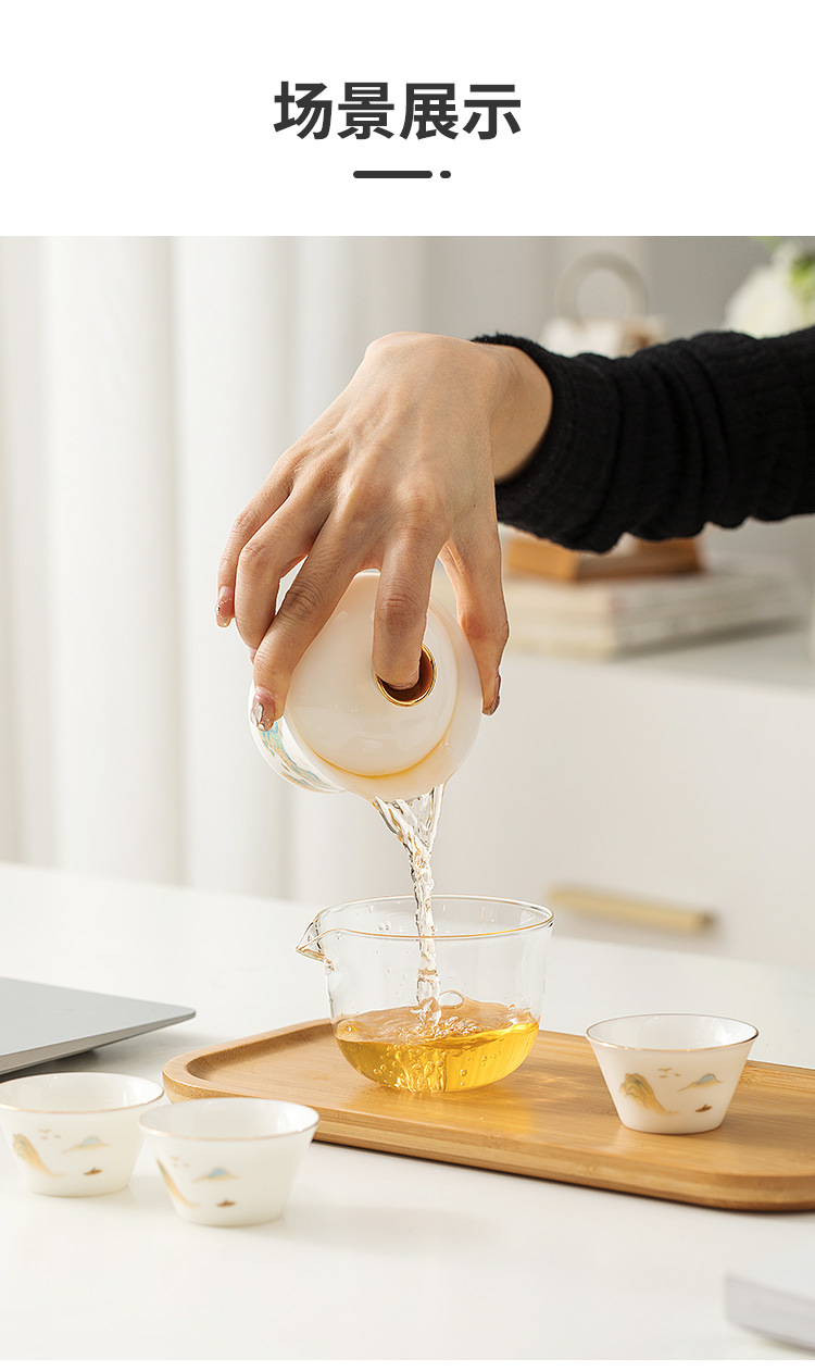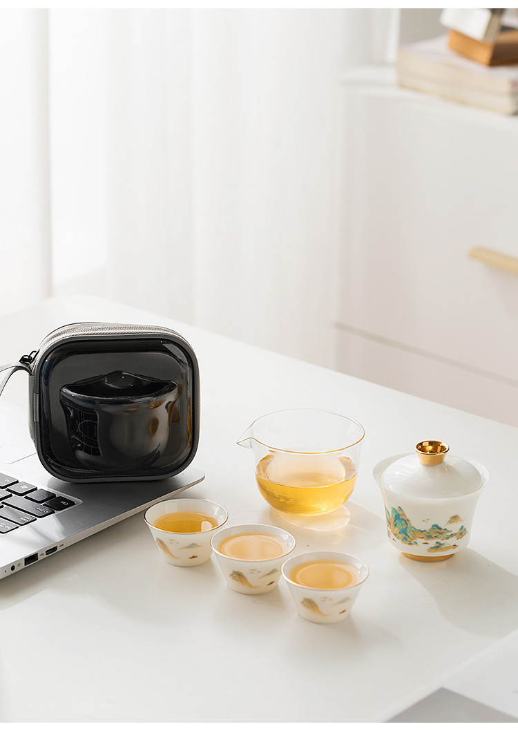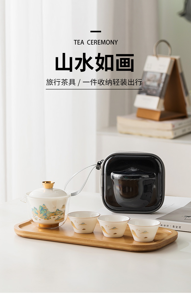 旅行茶器セット携帯式ティーポット屋外キャンプ家庭用茶盤陶磁器工夫中国式汝窯カップ