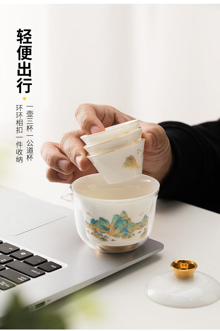 カラー 山水は絵のように碗をかぶせます。,トンボ型蓋碗【旅行茶器】,福如東海蓋碗【旅行茶道具】,純白の蓋碗【旅行茶器】