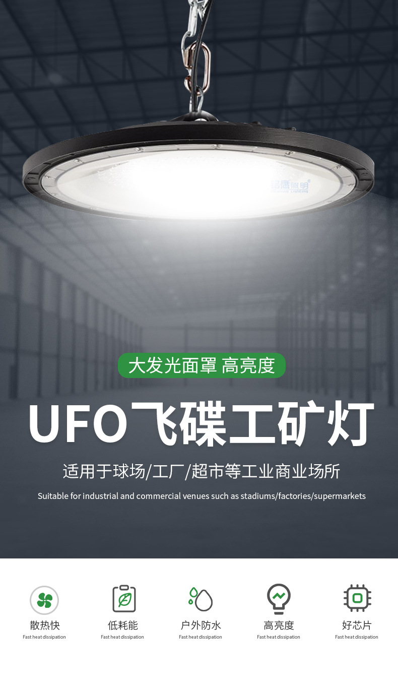 跨境超亮鳍片led工矿灯UFO飞碟工厂房车间吊灯仓库工业游泳馆照明