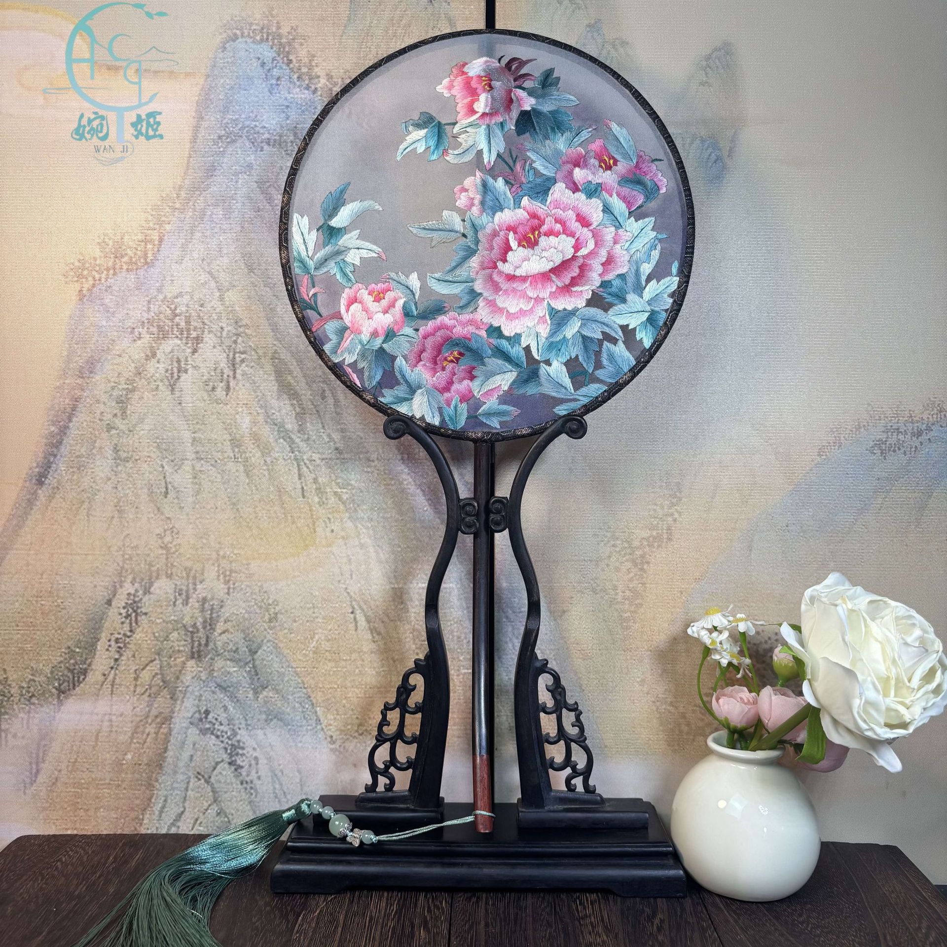 【卸売り注文】両面刺繍うちわ古風円扇両面刺繍うちわ蘇刺繍うちわ舞踏扇