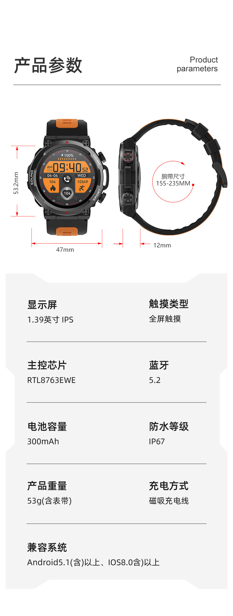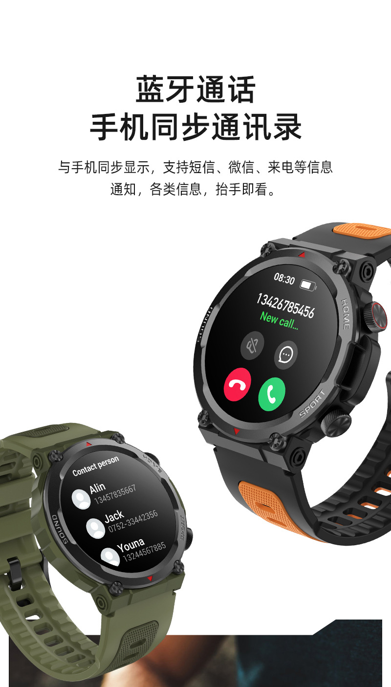 クロスボーダーCF53スマート腕时计ブルートゥース通话LED懐中电灯アモルスクリーンメンズスポーツ腕时计多机能