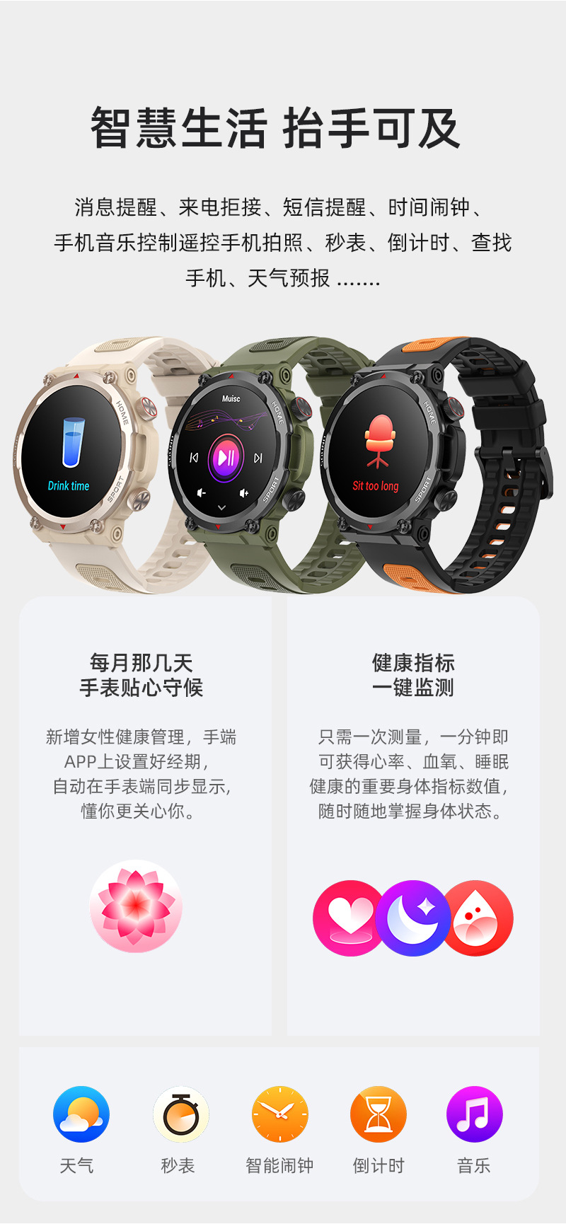 機能 ステップ,心拍数モニタリング,社交娯楽,Bluetooth通話,スマートリマインダー,リモコン自撮り