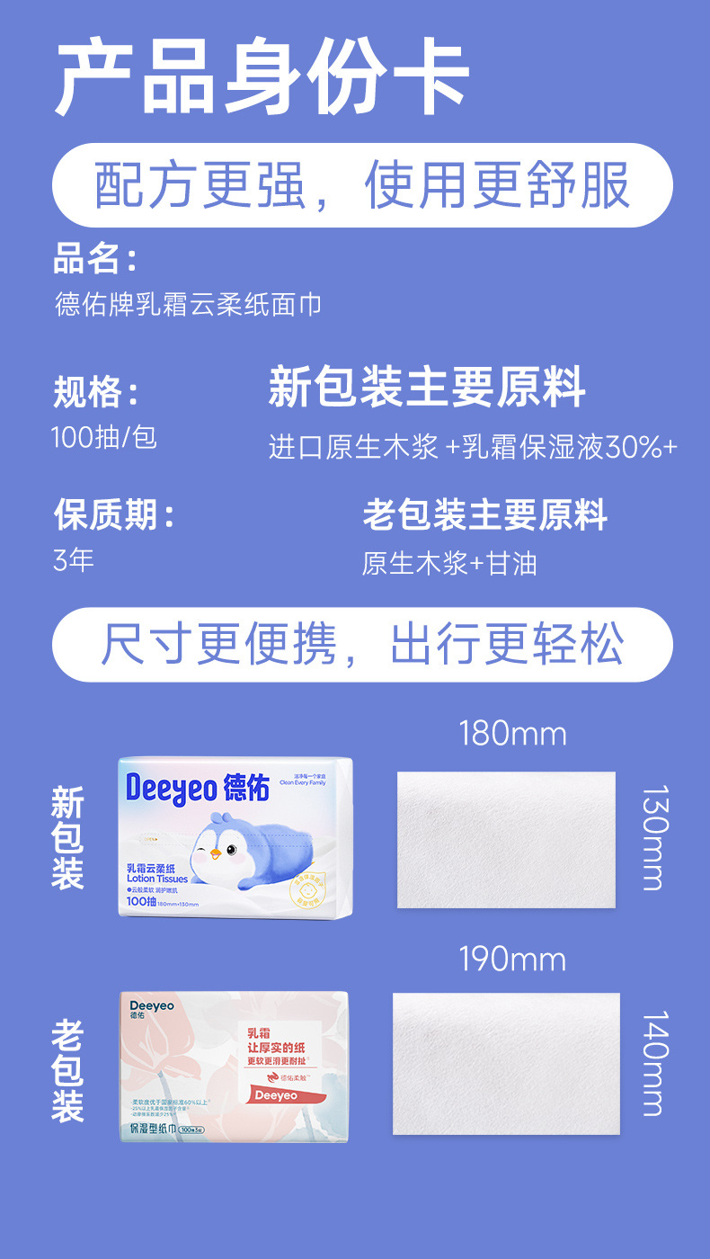 【新人専用】徳佑保湿紙赤ちゃんクリーム紙雲柔巾100抽出1包