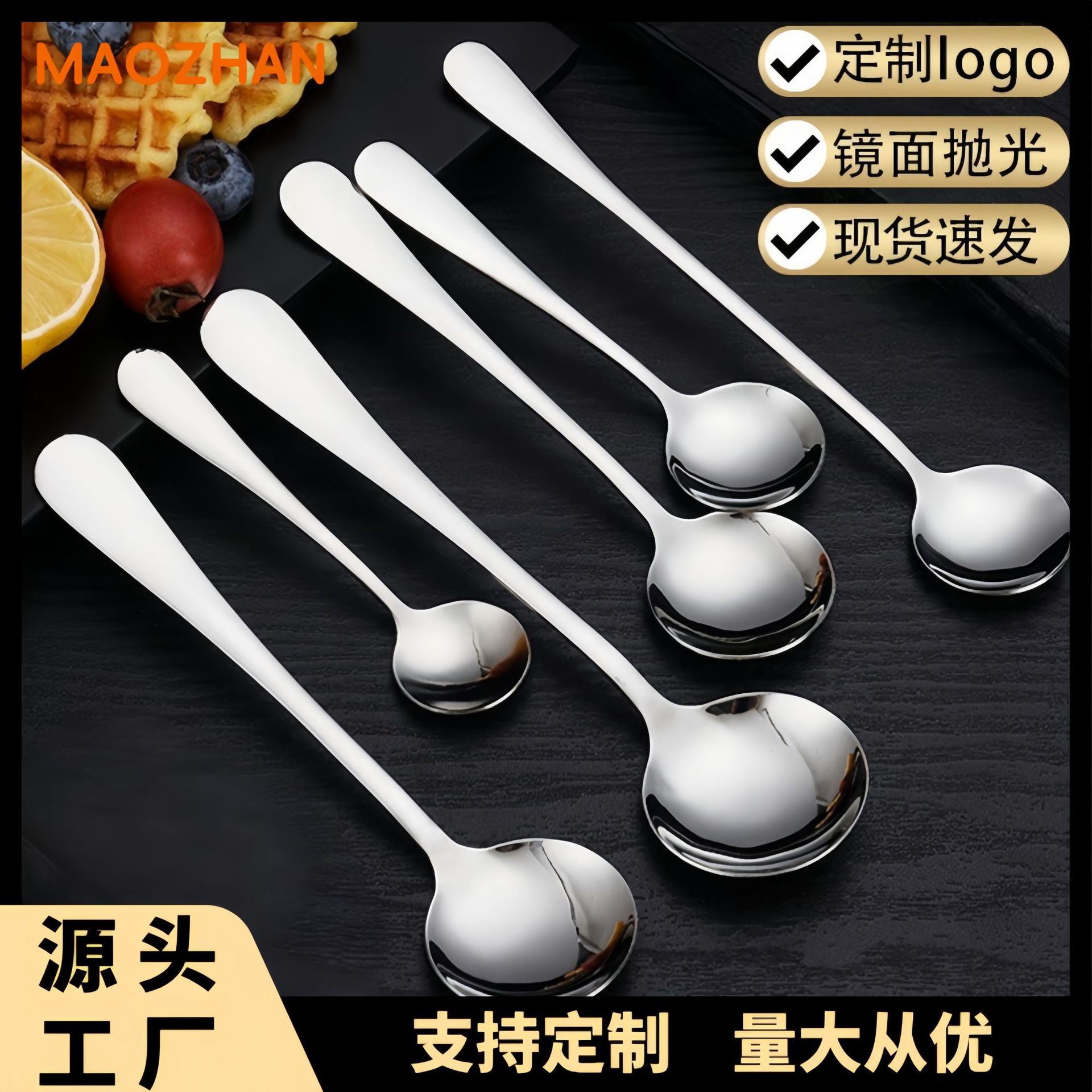 304不锈钢勺子家用吃饭勺咖啡勺甜品勺调羹长柄搅拌勺调料勺圆勺