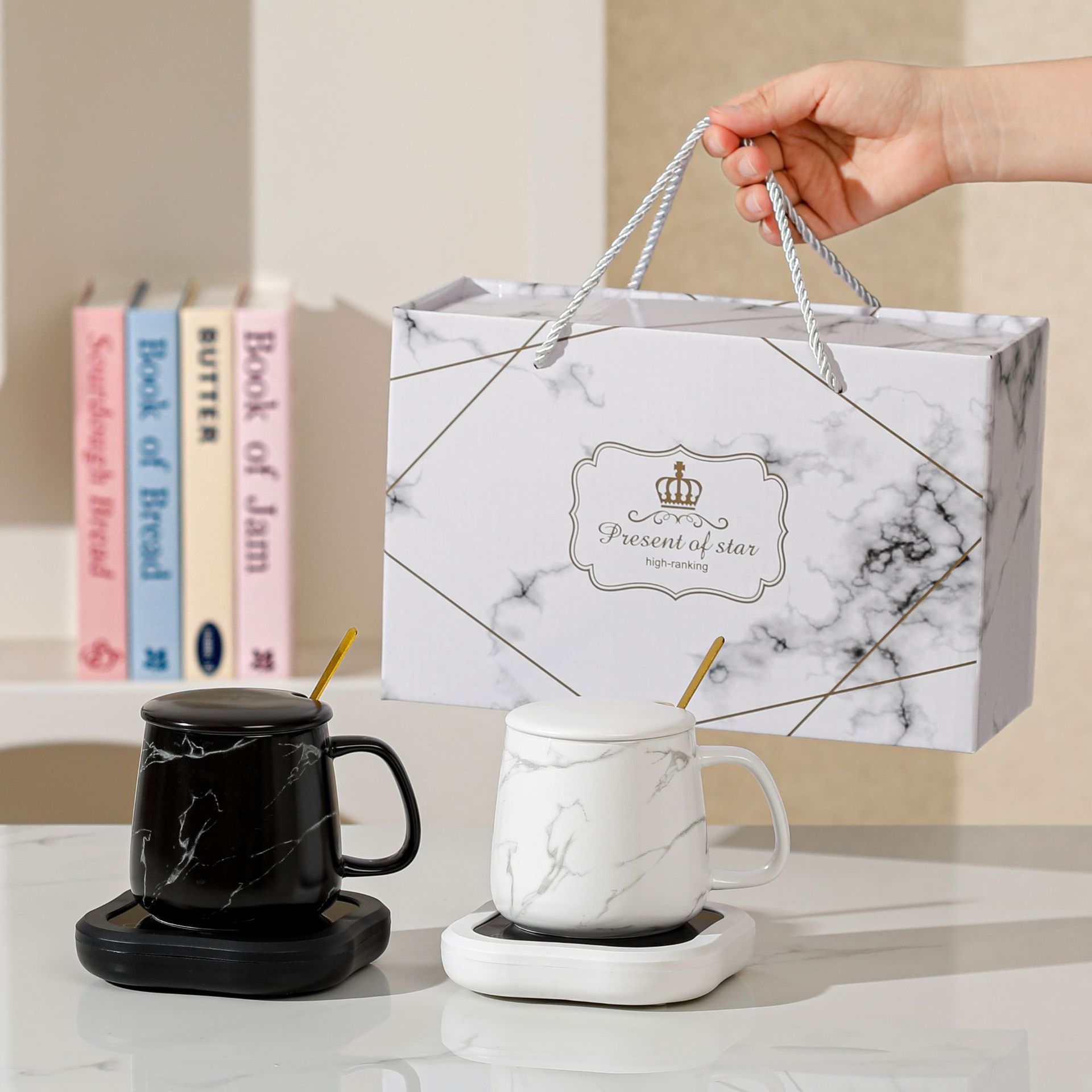 跨境可换图案大理石纹恒温杯礼盒装情侣陶瓷杯定制logo对杯伴手礼
