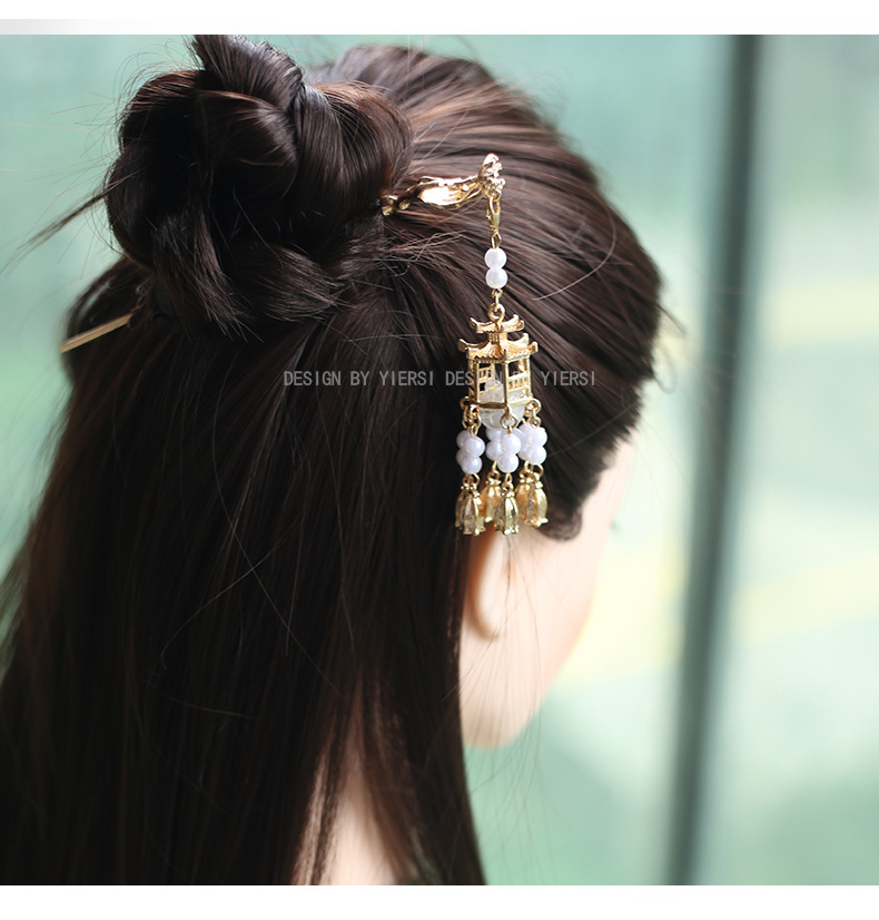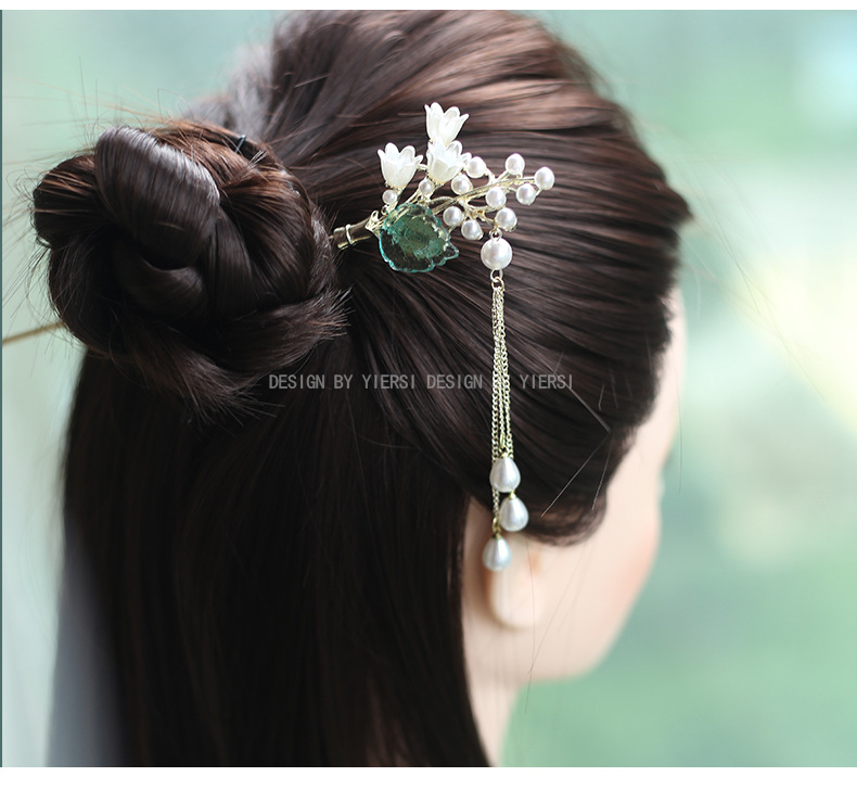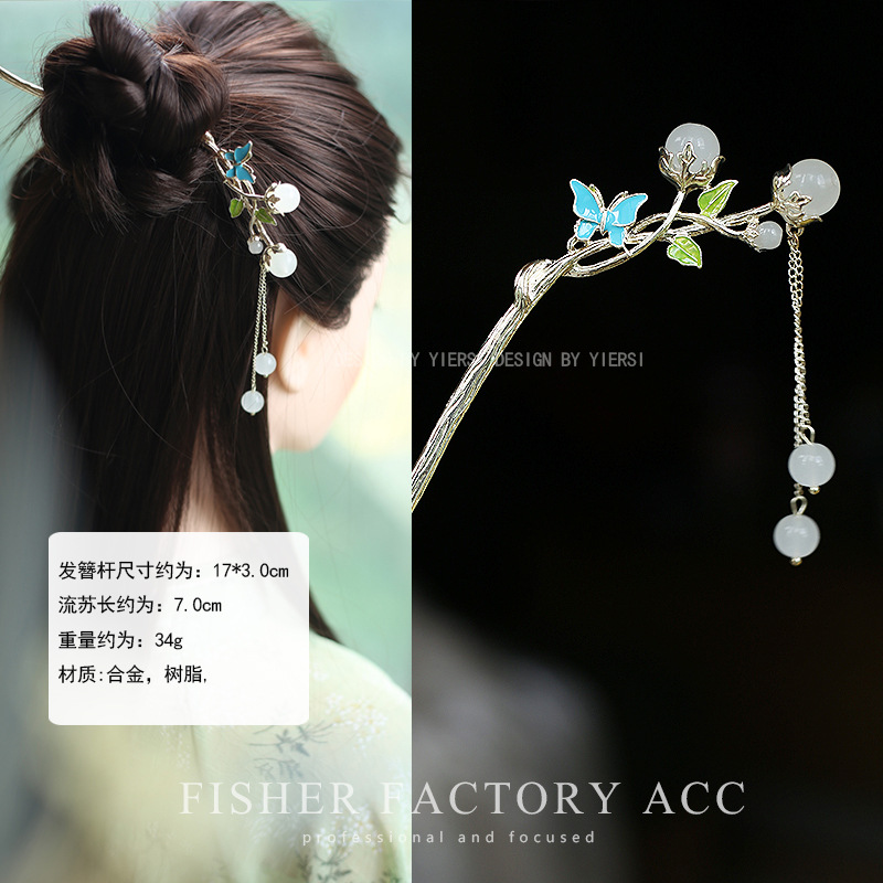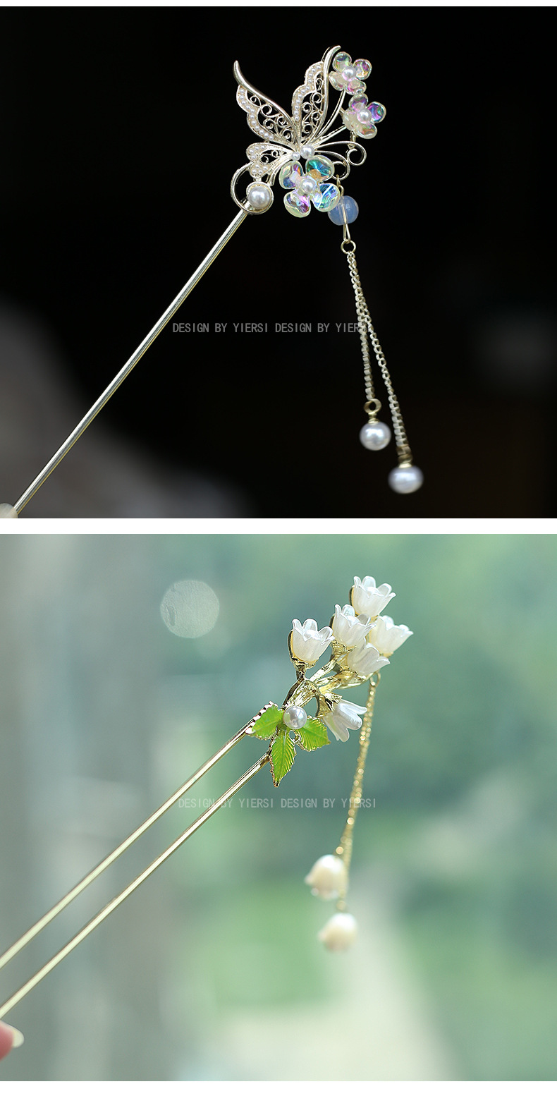 古風ファッション花ヘアピン流蘇真珠漢服チャイナドレス盤髪ヘアピン高級復古ステップ蝶ヘアピン