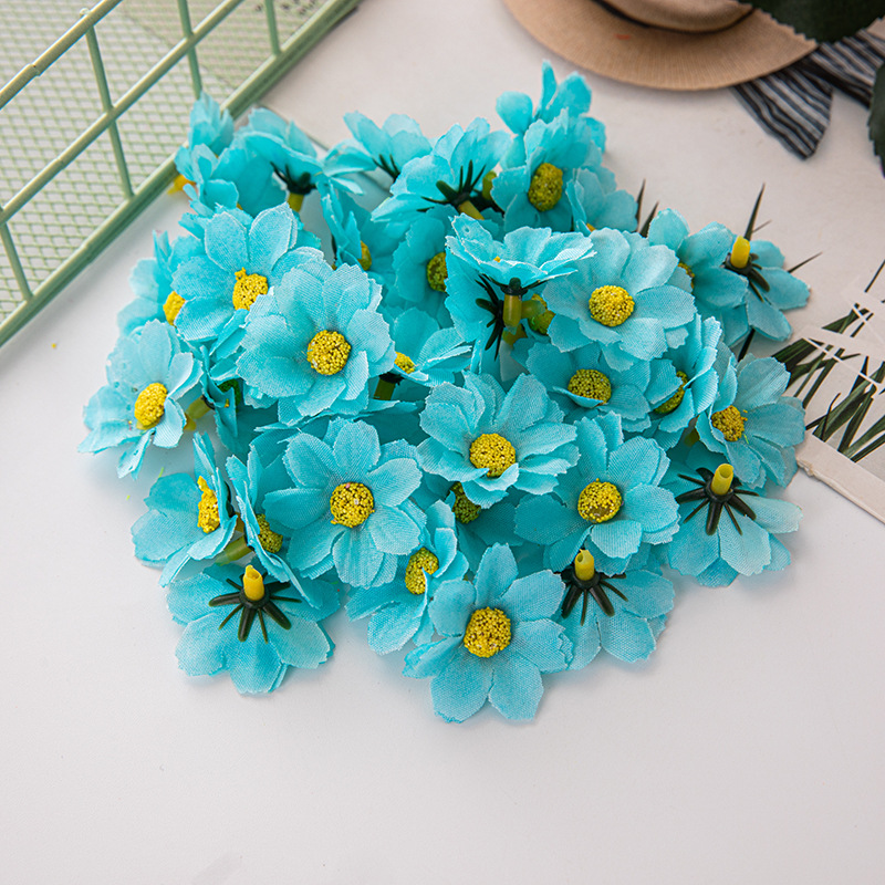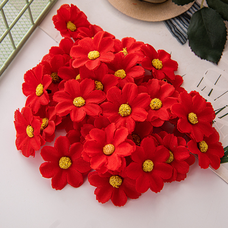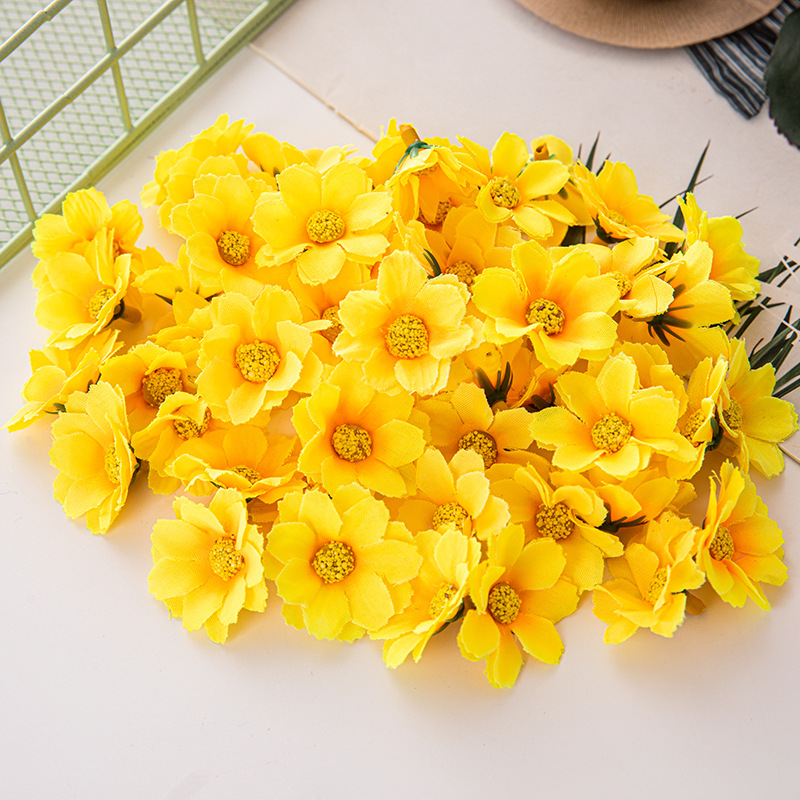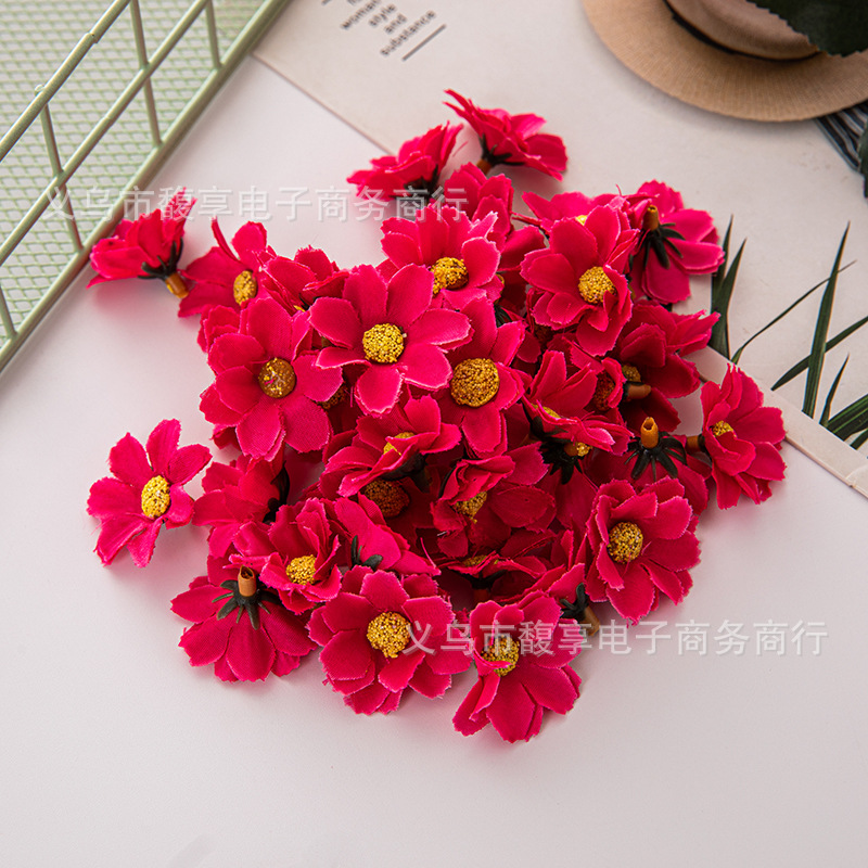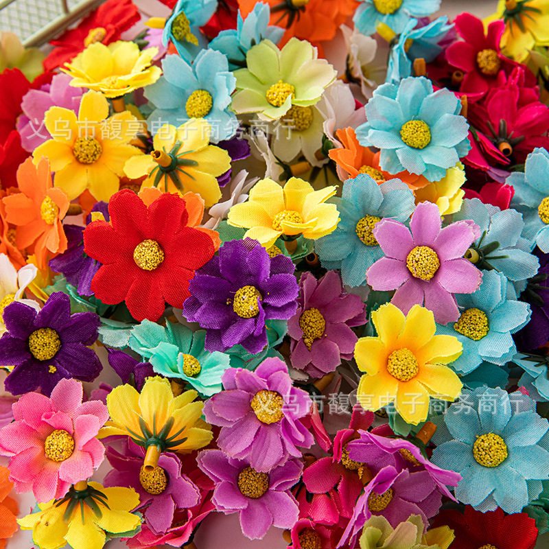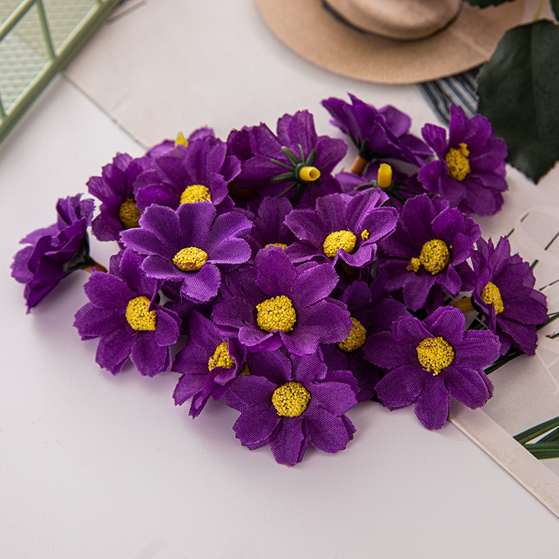 現物はよく売れています。4cmカラー12葉の小さい菊の太陽の花の頭diy二層の小さい菊のヒマワリのメーカーの卸売りです。