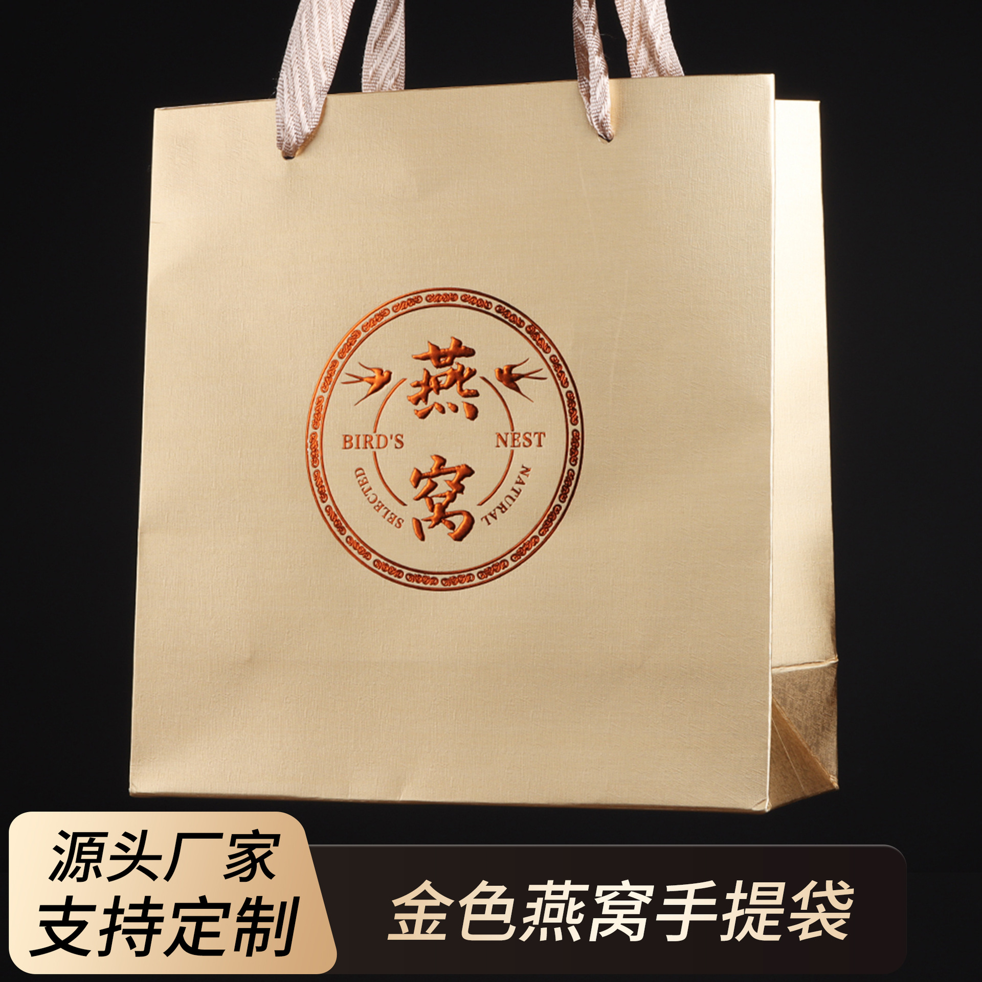 加厚金色燕窝手提袋纸袋礼袋滋补品包装袋手拎袋烫金送礼礼品袋