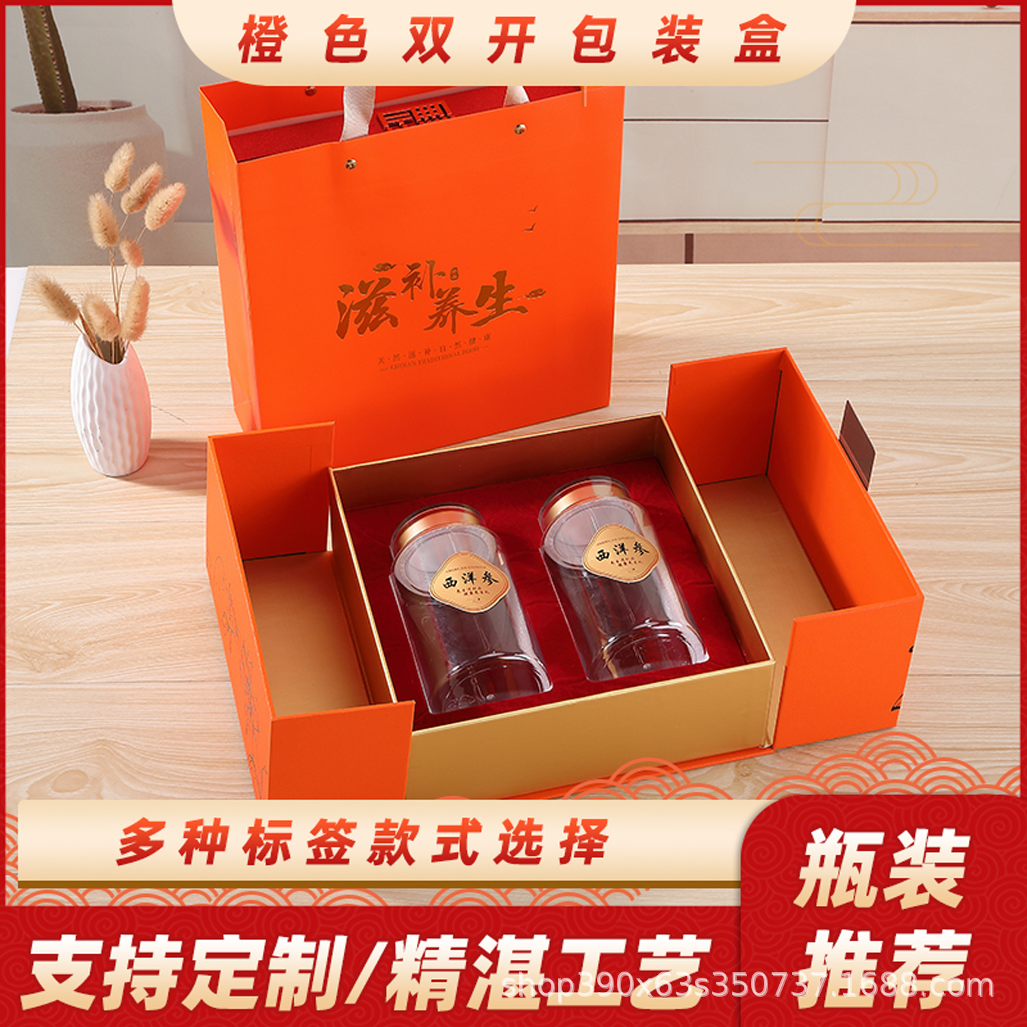 オレンジ色のツバメの箱の虫草の西洋参の礼箱の双開の2重のpcの瓶の包装箱の贈り物の箱はlogoを印刷することができます。