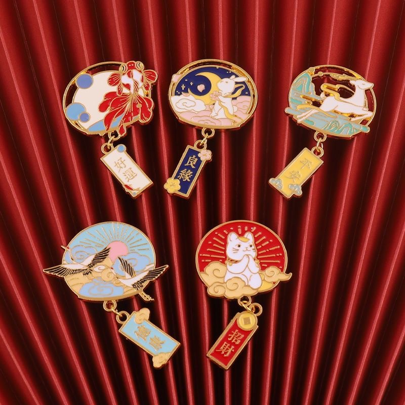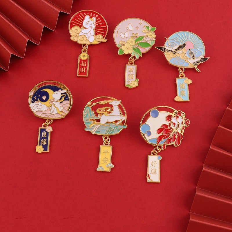 中国風金持ち幸運招財平安祈祷ブローチ健康祝福金属バッジバックパック装飾品