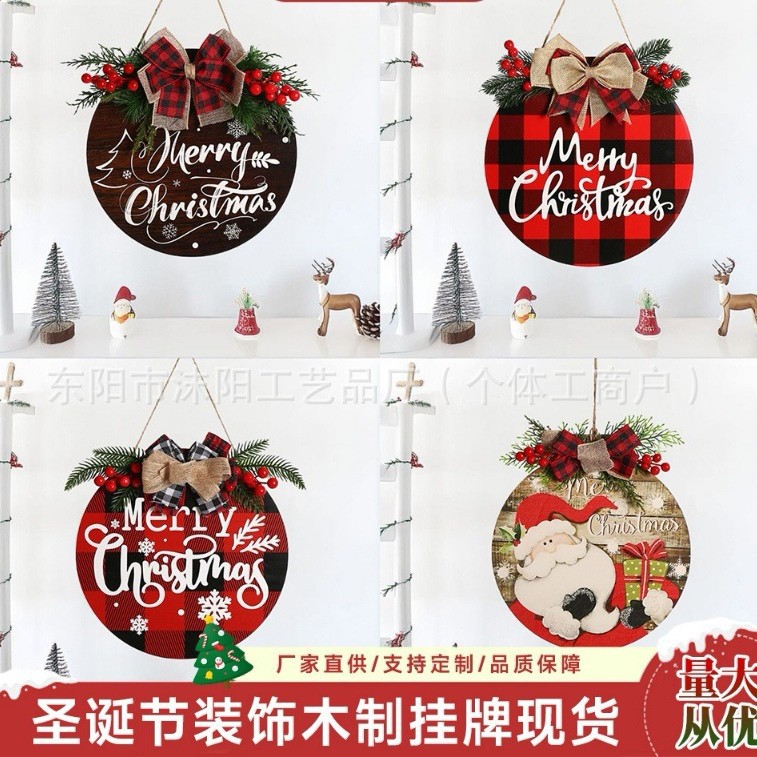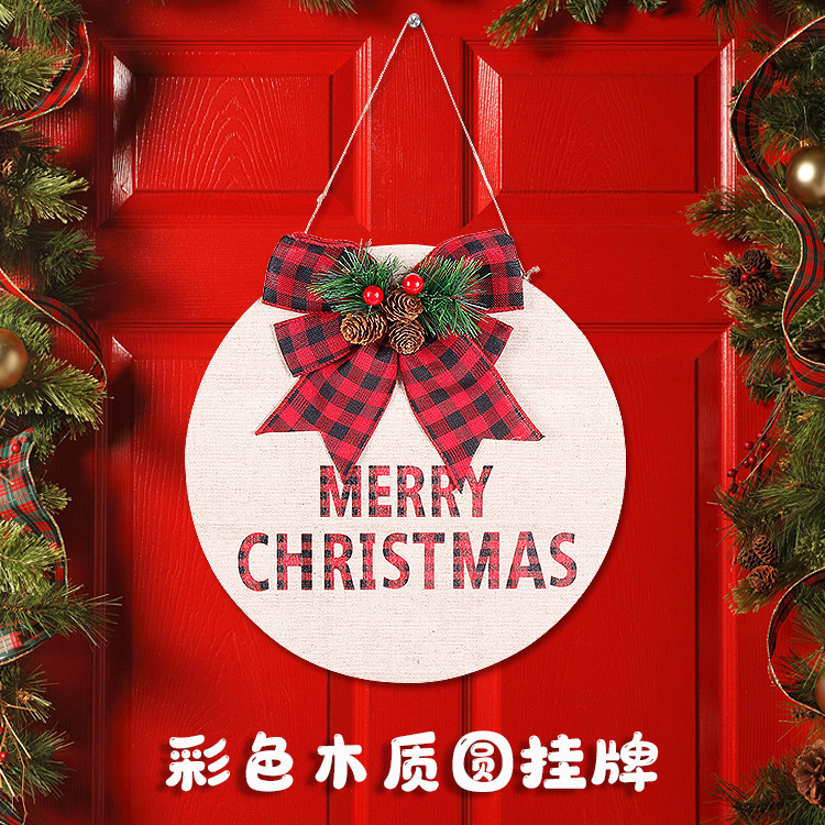 新商品クリスマス木製看板クリスマス壁面ショーウインドー装飾ストラップ蝶結び円形表札ストラップ
