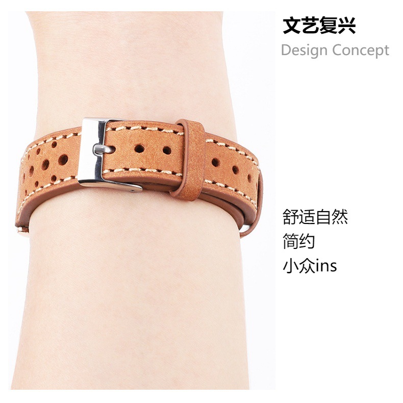 植鞣革油蜡皮头层牛皮树蒿皮适用智能手表带镂空真皮表带新