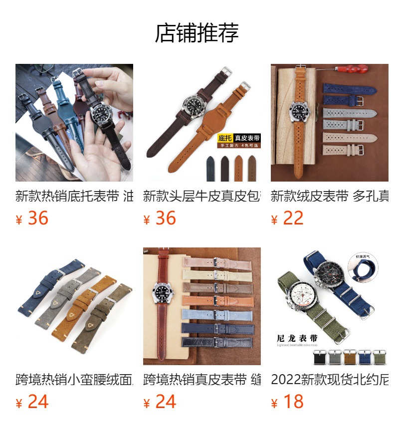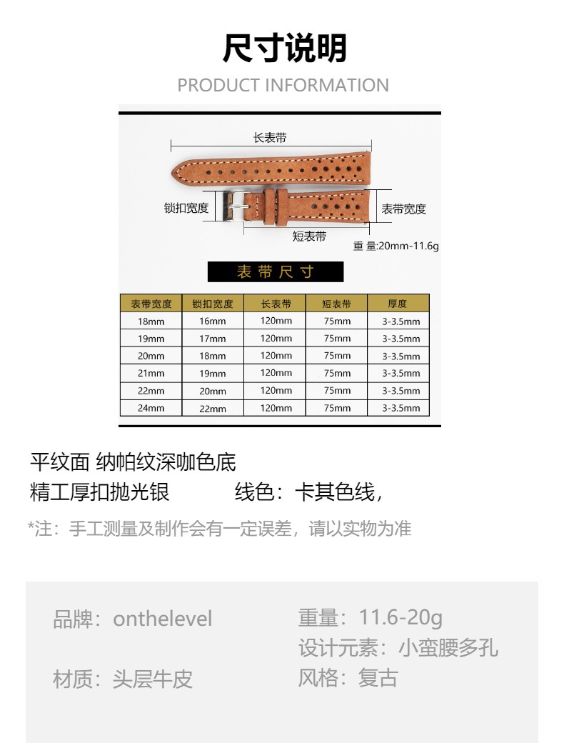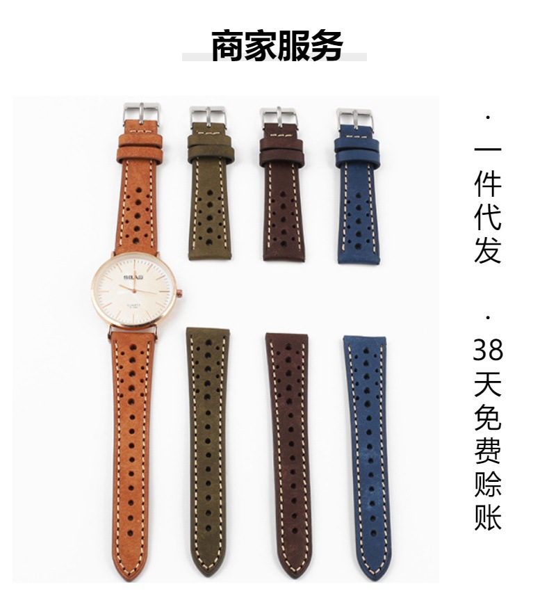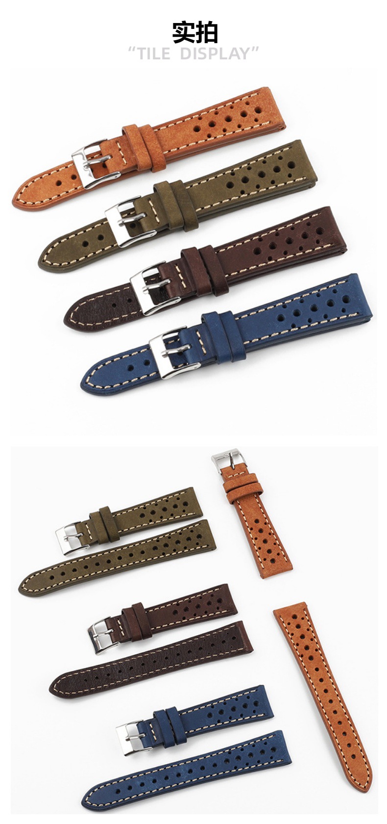 新款手掌纹现货头层真皮牛皮表带18 19 20 22mm多孔透气真皮手表