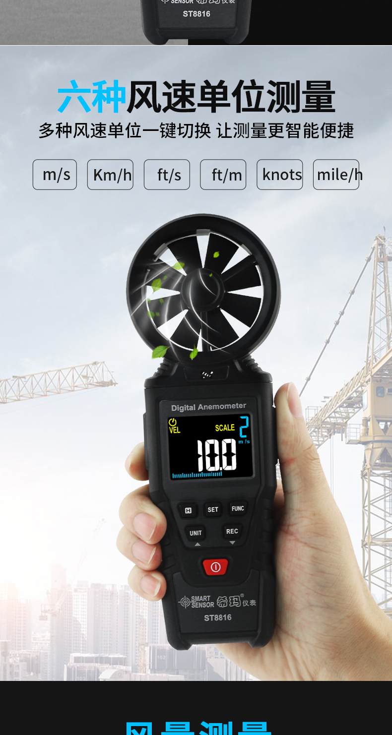 シーマST8816一体式デジタル手持ち風速計プロ級風量風力等級測定器