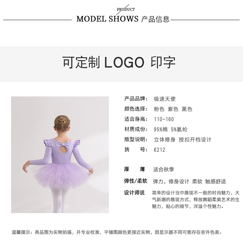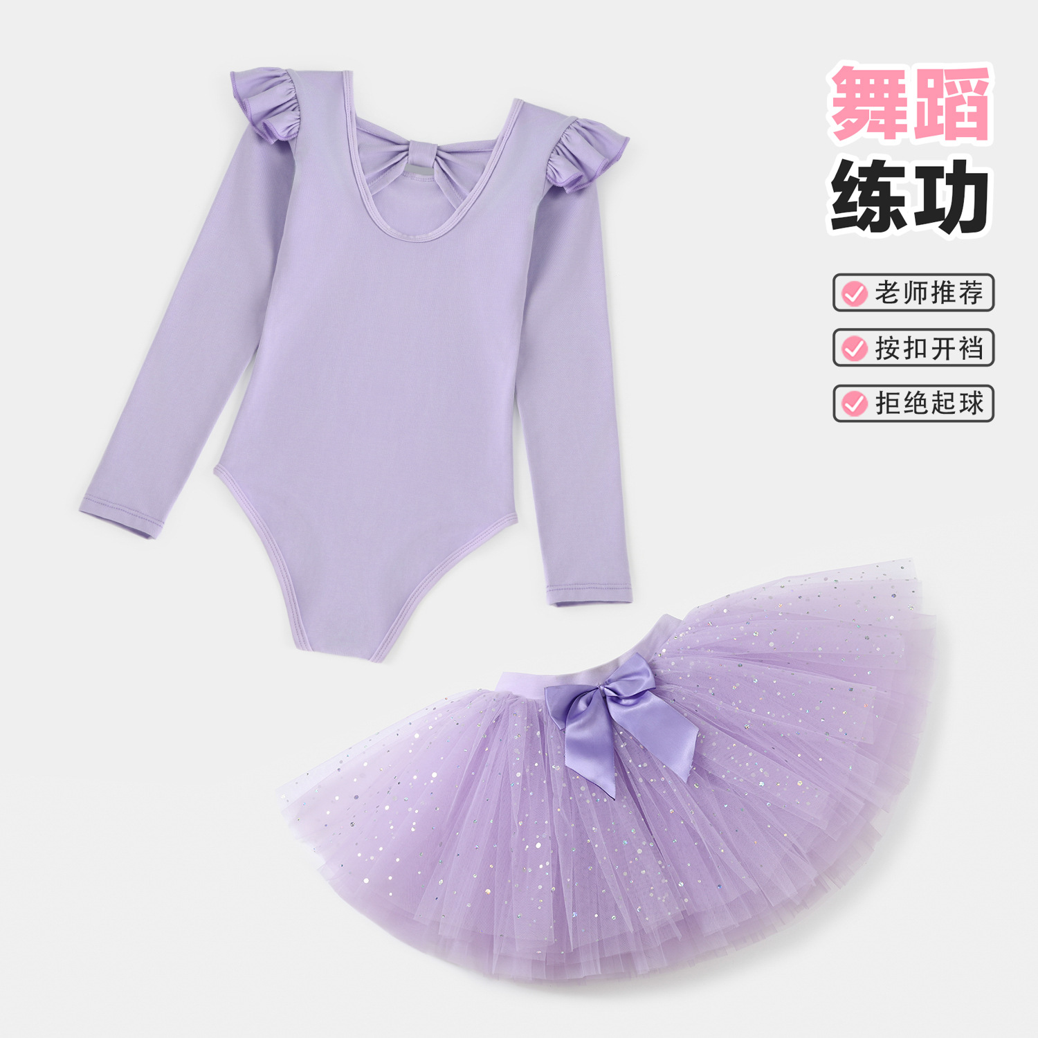 子供ダンス服純綿紫秋冬長袖女の子練習服小さな女の子ダンス服幼児バレエスカート