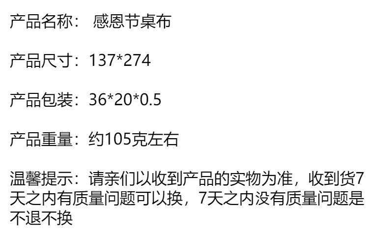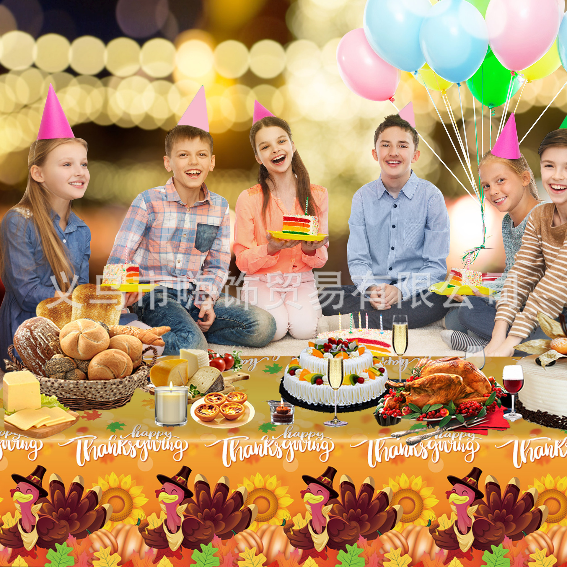 クロスボーダー感謝祭七面鳥テーブルクロス秋カボチャカエデテーブルクロス感謝祭収穫パーティーテーブル装飾用