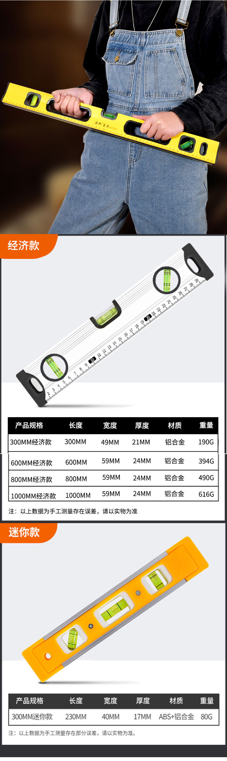 中実水平尺多規格高精度鋳造アルミ強磁水平尺専門家庭用測定ツール