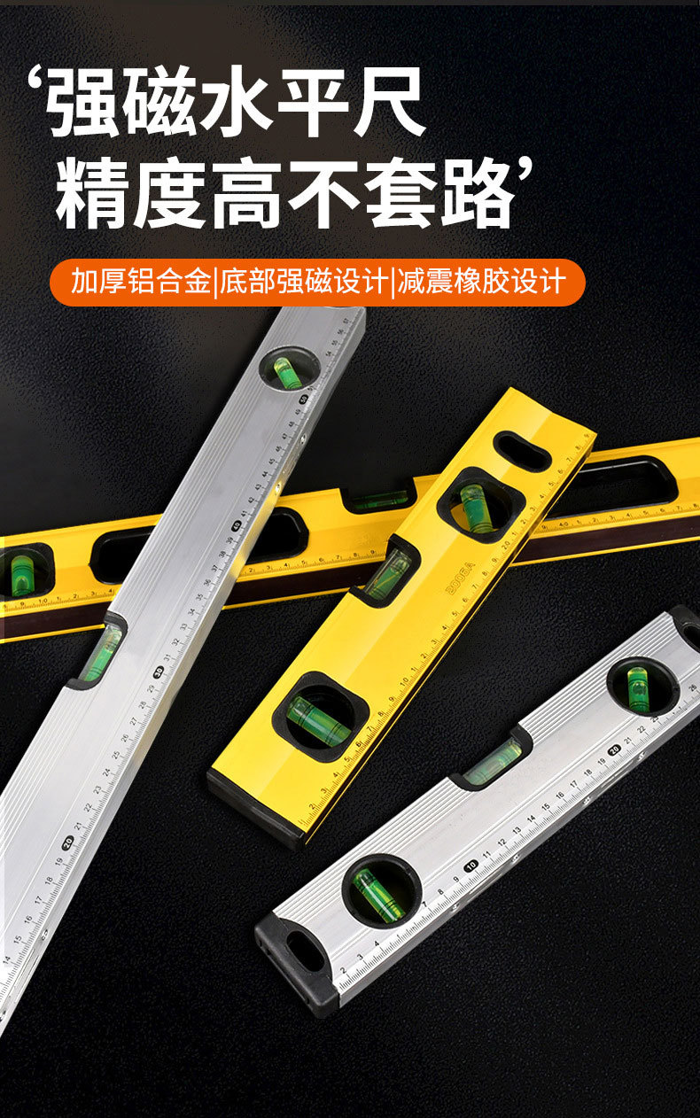 铝合金水平尺强磁加厚平水尺水平仪水平靠尺高精度耐摔装修工地用