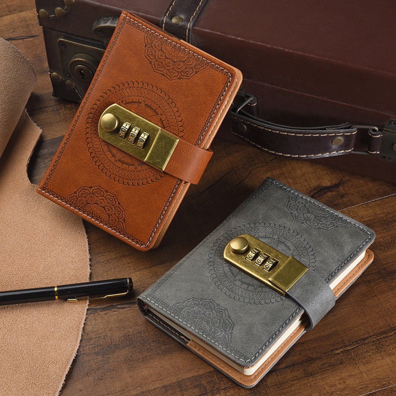 跨境复古带锁迷你A7密码本加厚创意笔记本文具用品学生便携小本子