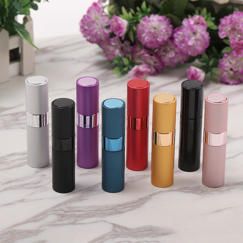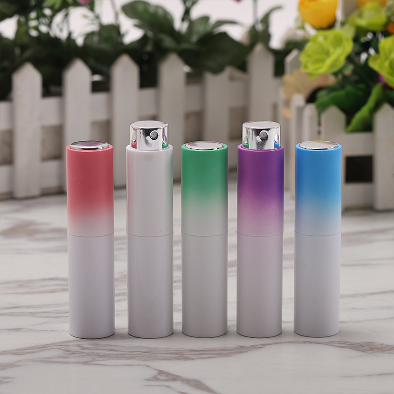 8ml 2つのポータブルガラス内胆グラデーション色回転香水分注ボトルスプレーサンプル空ボトルスポット