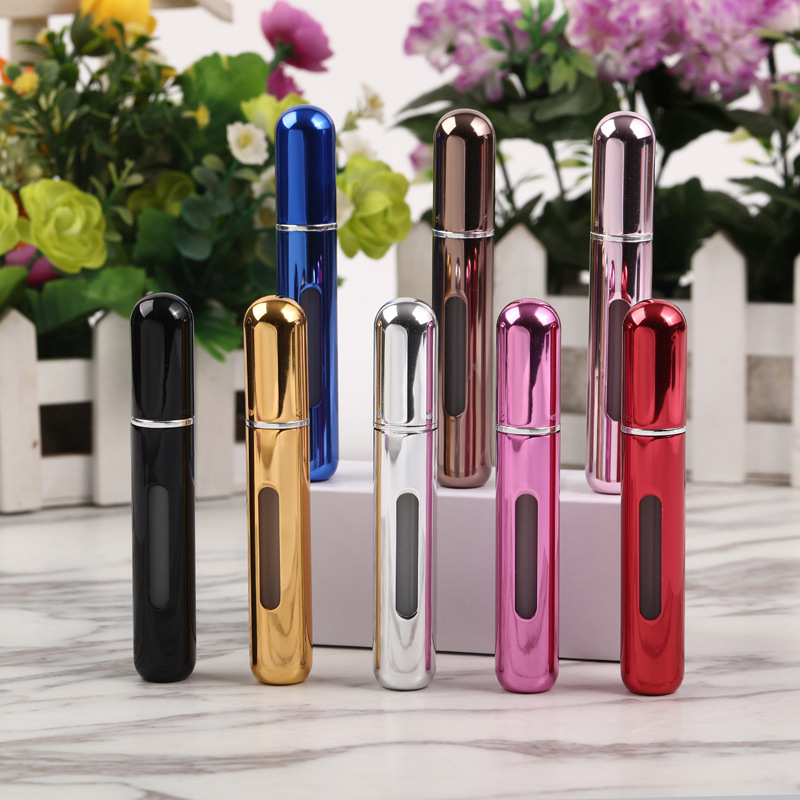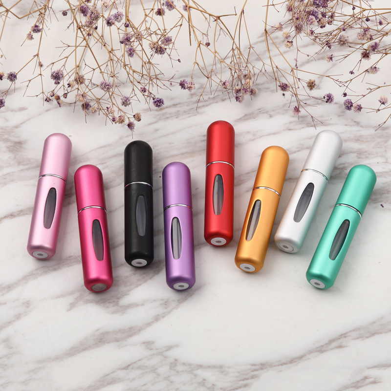 既製香水詰め替えボトル 5ml フラットヘッド ポータブル旅行用 アルミ製詰め替え式プレス式香水スプレーボトル