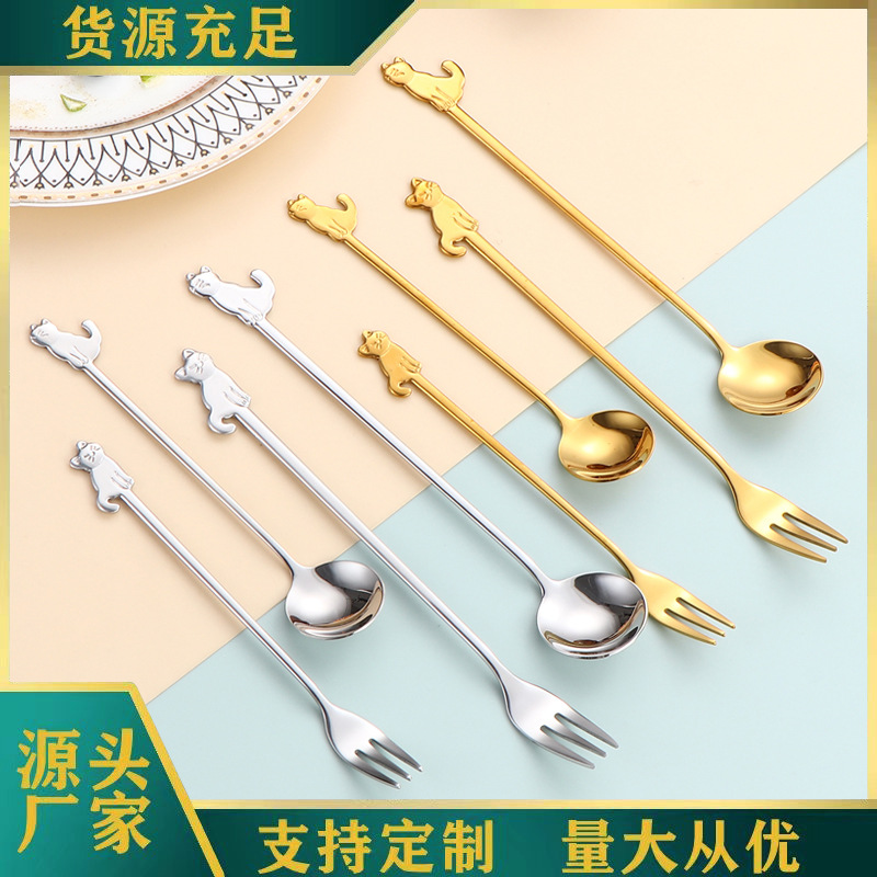 クロスボーダー304スプーンフォークステンレスコーヒースプーン高颜値子猫スプーンクリエイティブフルーツフォークケーキデザートスプーン