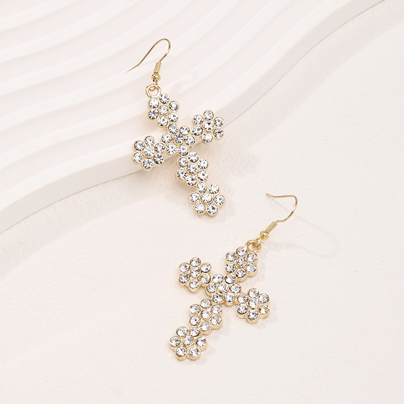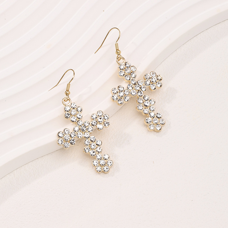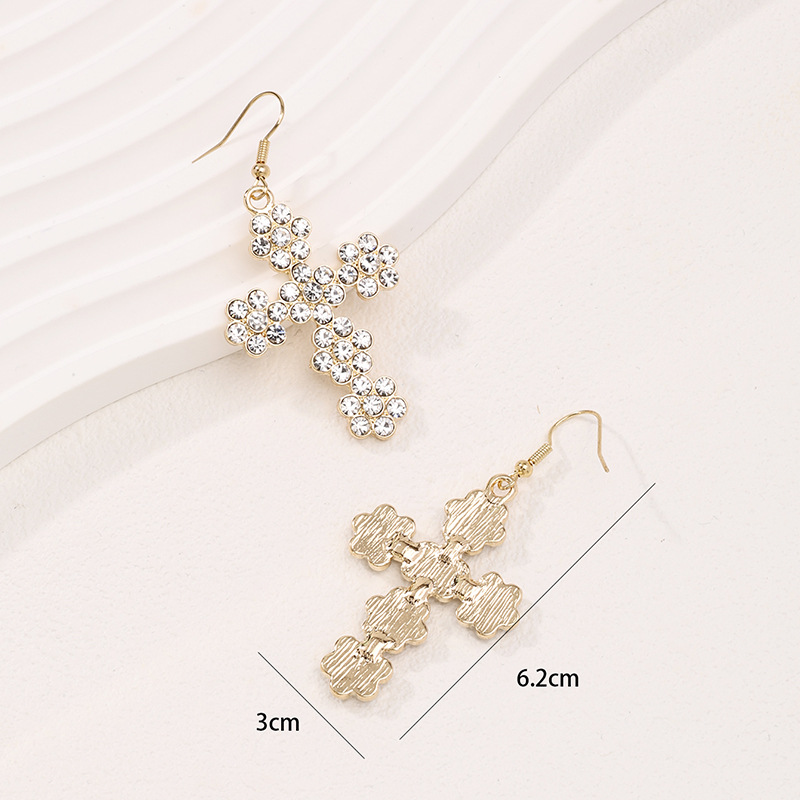 欧米の流行のアクセサリの宝石のシンプルなクロスの花のイヤリングの女性の個性はダイヤモンドのファッションの耳飾りのイヤリングの卸売りを入れます。