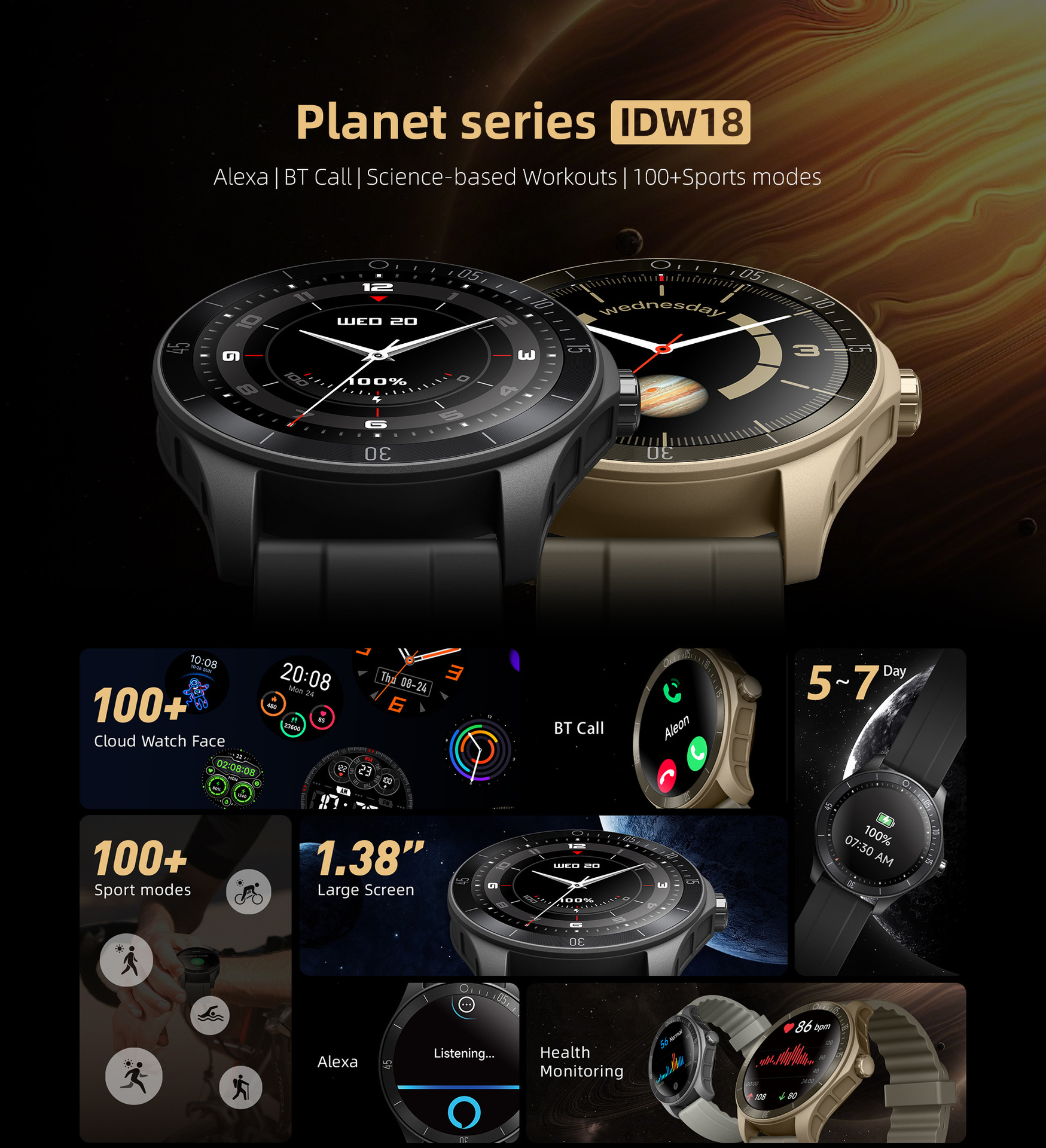 IDW19 スマートウォッチ Bluetooth 通話スポーツ健康心拍数血中酸素モニタリング音声アシスタント