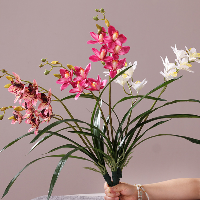 高档手感仿真花2叉蕙兰假花蕙兰叶片禅意茶室花盆插花厂家批发