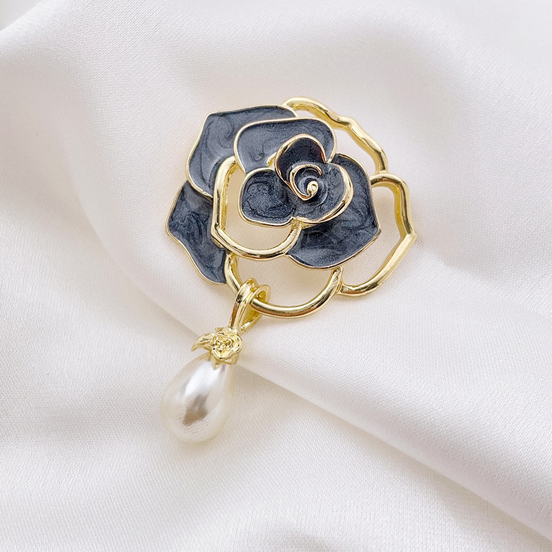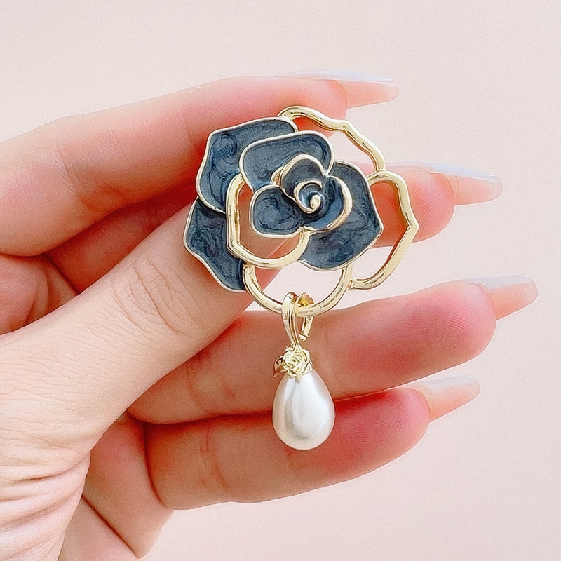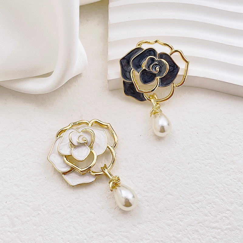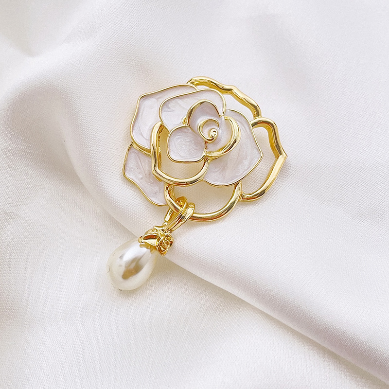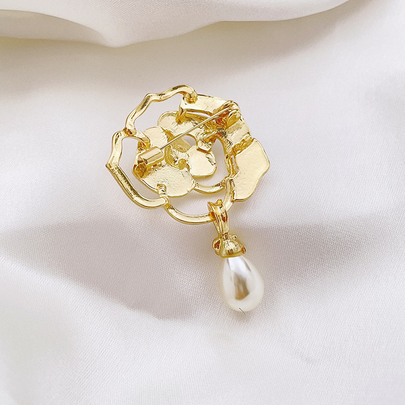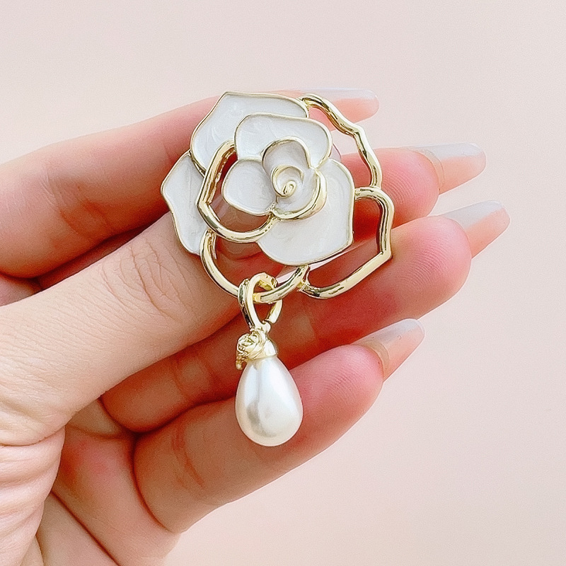 ツバキの花の滴油のブローチの真珠の水滴の気質は服の胸の花の軽い豪華なフランスのピンの高級感のブローチを配合します。