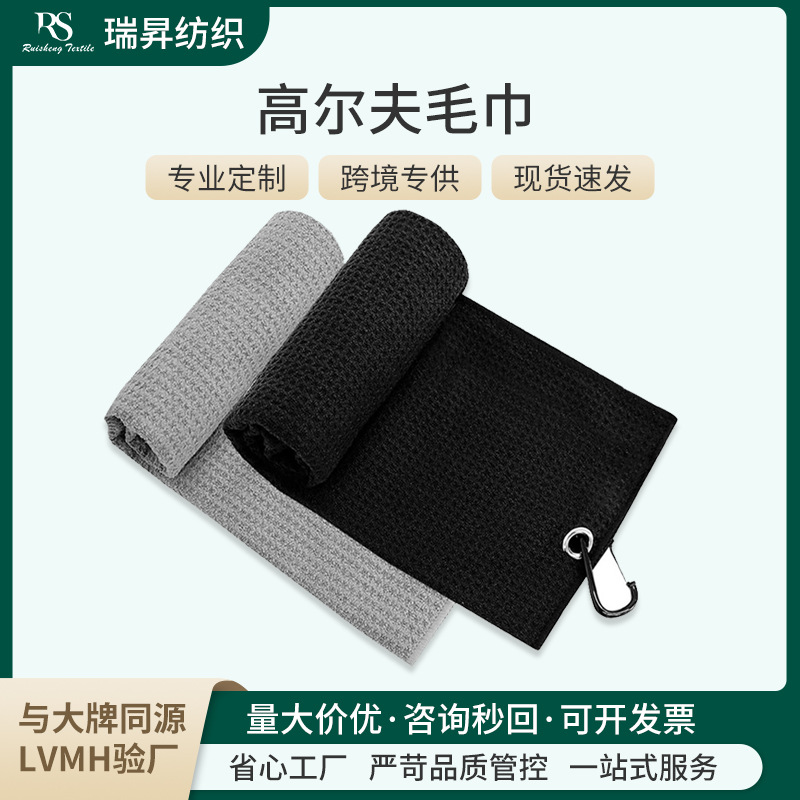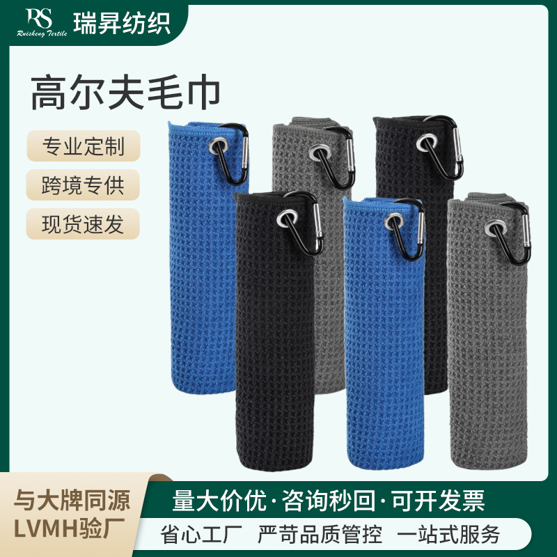 国境を越えて人気の多色ゴルフタオル、スポーツ用超極細繊維ワッフル柄パイナップル柄ボールタオル、フィットネス用吸汗タオル