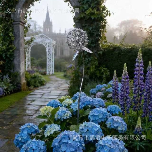 跨境爆款银色仿真蒲公英 金属园艺立桩 乡村铁艺户外装饰工艺品