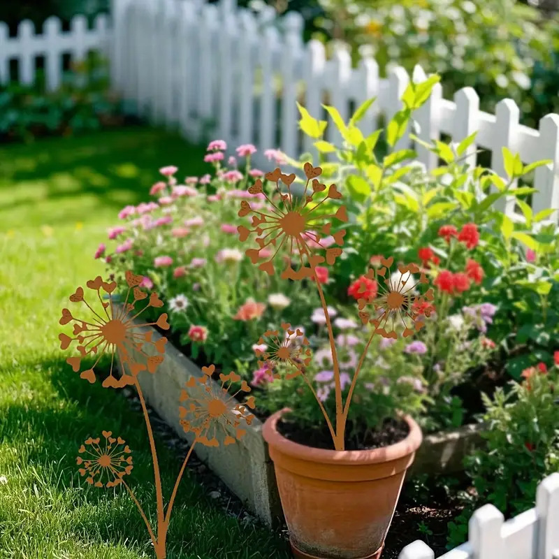 跨境复古锈色蒲公英地插田园做旧金属植物庭院地插花园装饰摆件