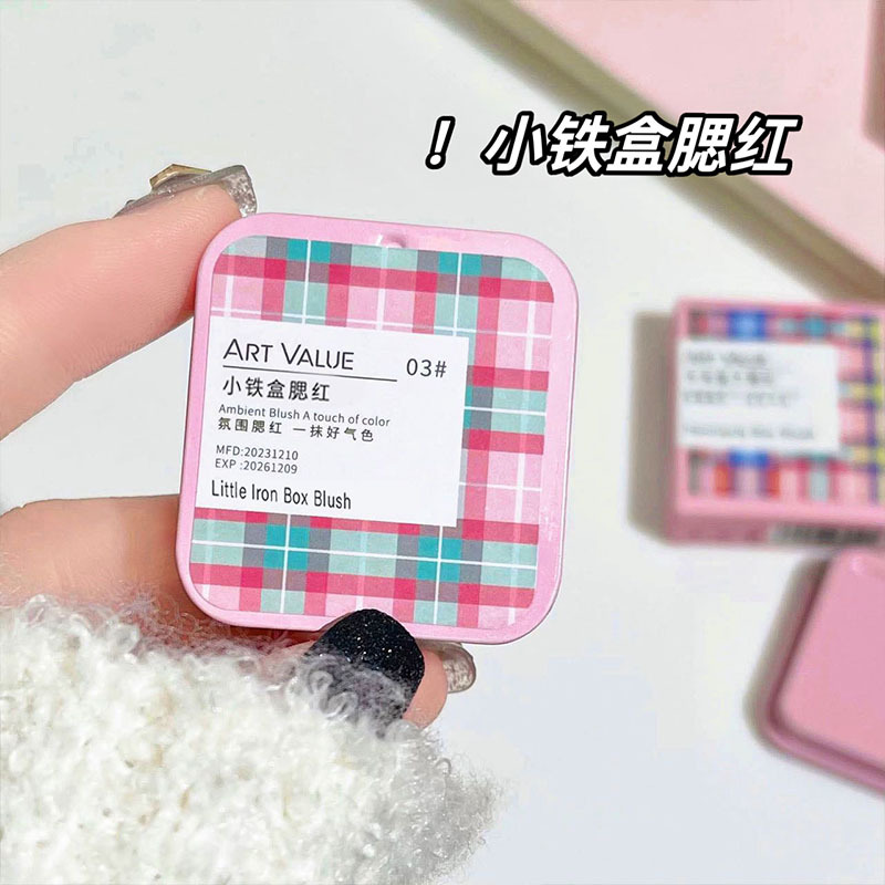 Art valueの小さい鉄の箱の頬紅の粉の質はきめ細かくて自然で、紅色の顕白の学生の化粧の平価の卸売りを配合します。