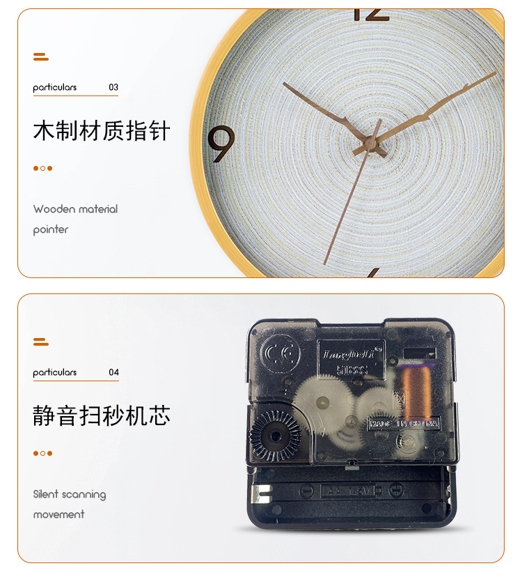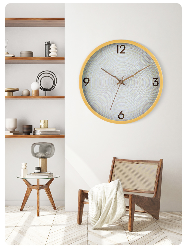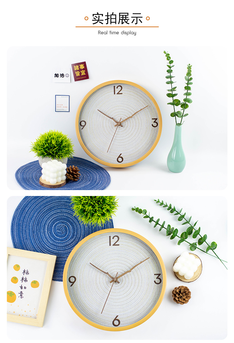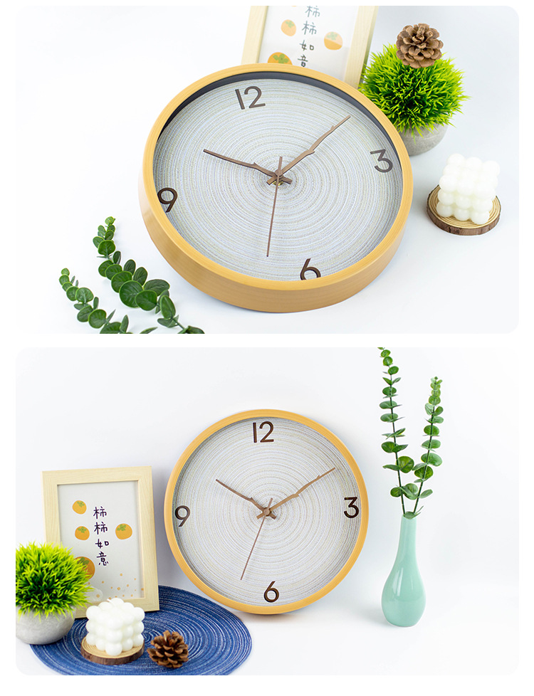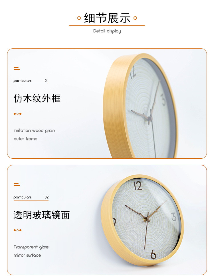 模造木目調壁掛け時計、リビングルーム用北欧シンプル時計、サイレント壁掛け時計、リビングルーム装飾時計