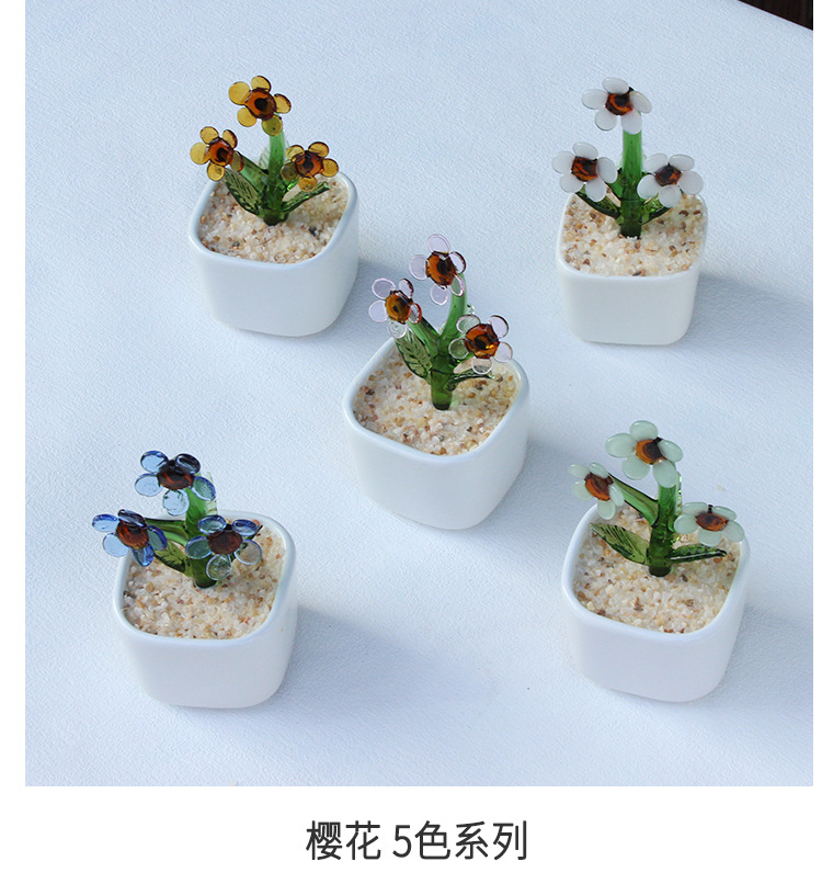 シ博の手作り瑠璃の小さい花のシミュレーションの花束の生け花のガラスの永遠の花の贈り物の清新なデスクトップの装飾の置物