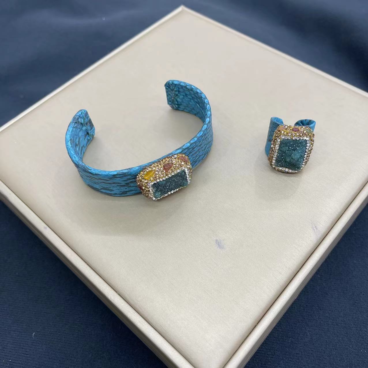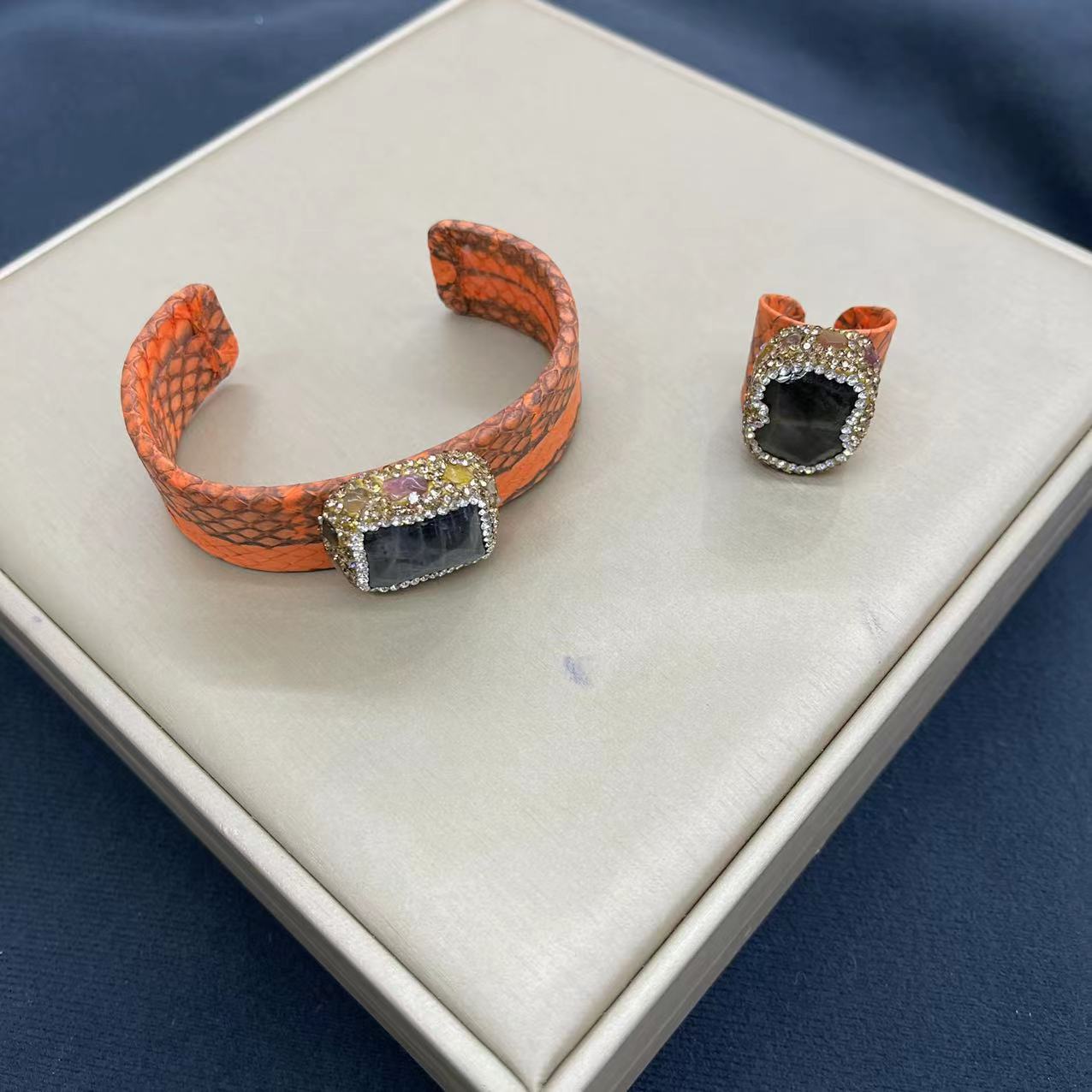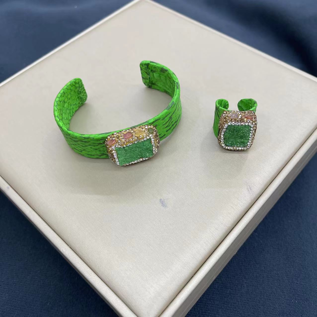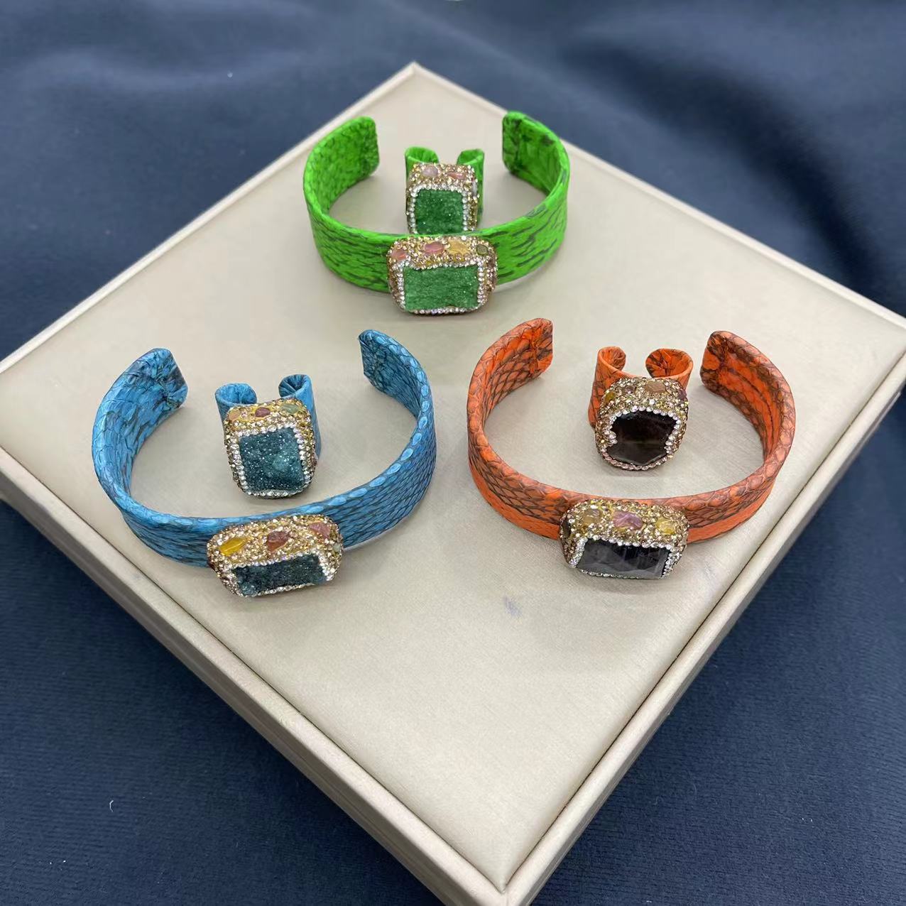 欧米の新型天然晶牙蛇皮ブレスレット指輪フランス式大衆個性ファッション高級宴会原卸売り