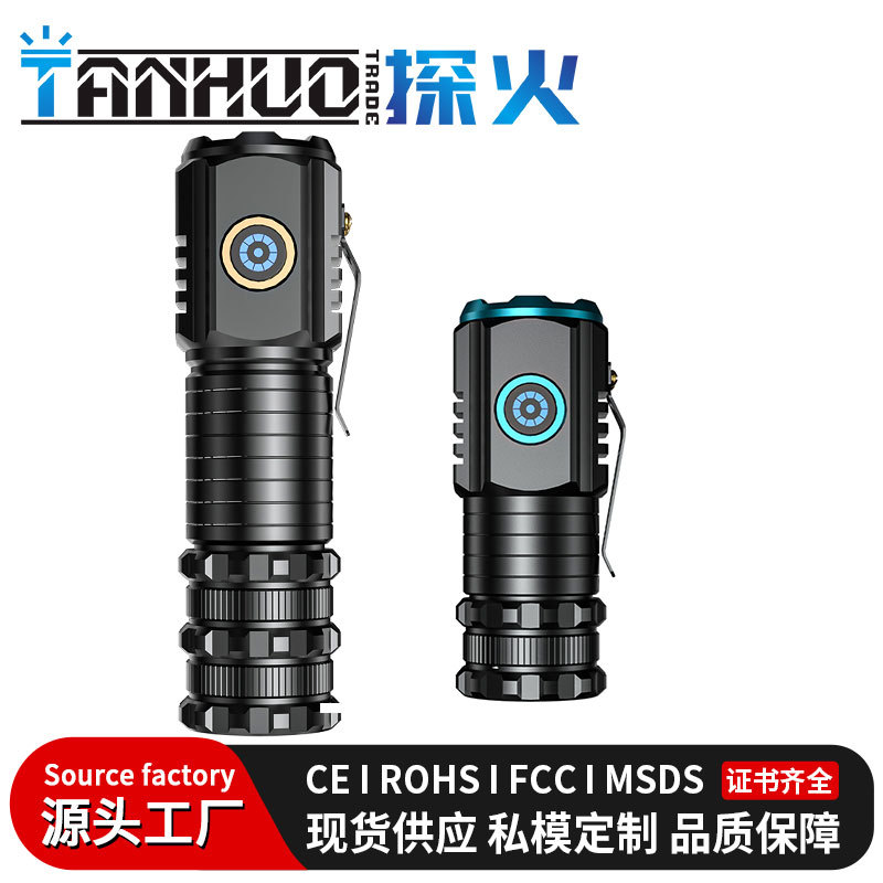 手振快熱金家庭用小型懐中電灯携帯ミニ三眼小鋼砲懐中電灯強光屋外充電超亮