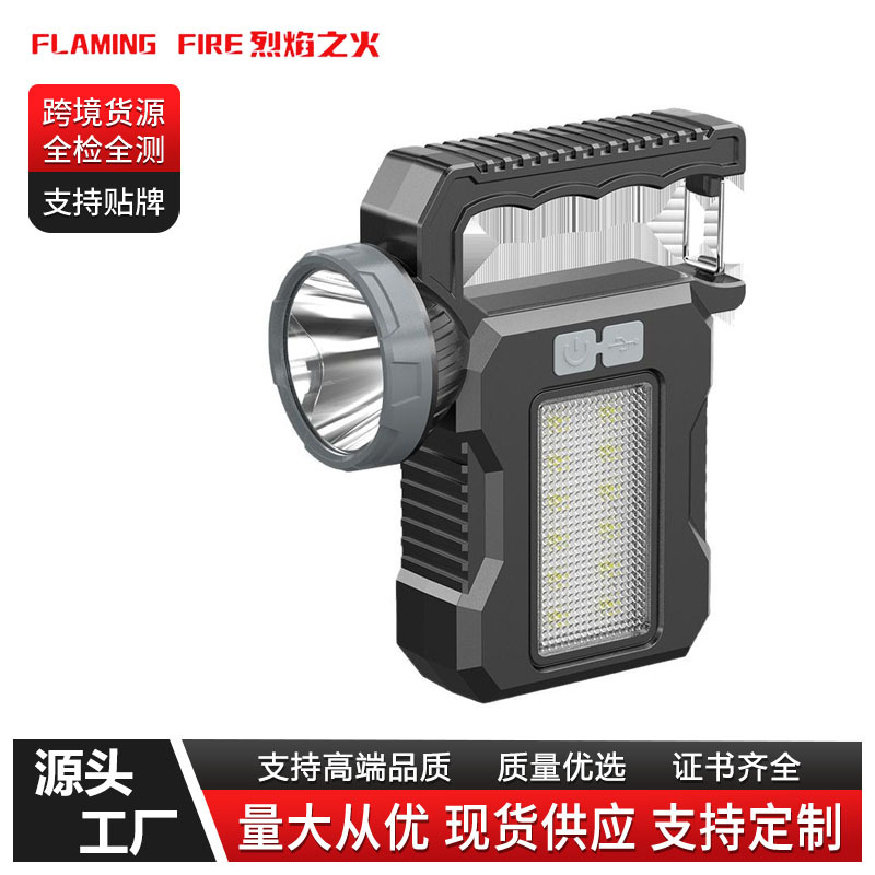 クロスボーダー太陽エネルギーポータブル懐中電灯led強光多機能充電屋外作業灯ポータブルサーチライトプラスチック