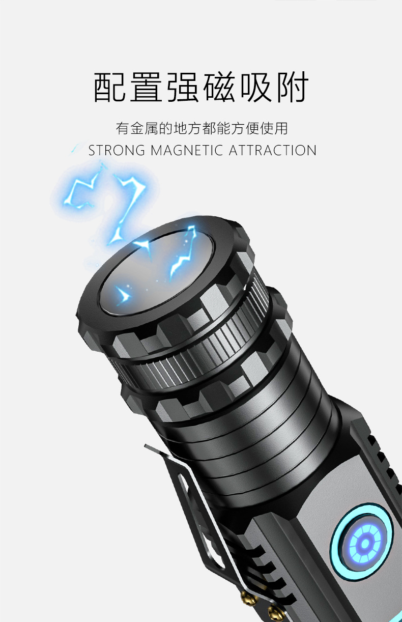屋外ミニ懐中電灯強光レーザー砲三眼多機能充電携帯長航続磁気吸引懐中電灯