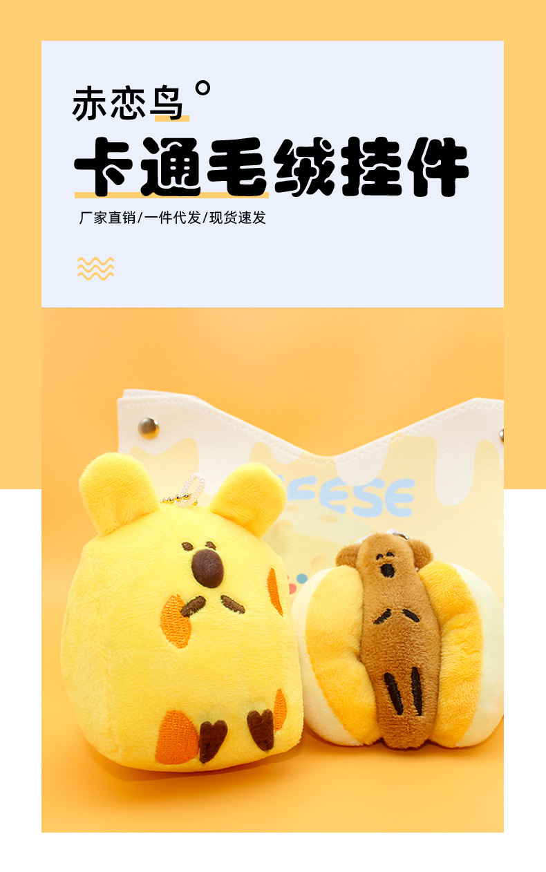 ins小紅書と同じスタイルのチーズホットドッグぬいぐるみペンダントカップルスクールバッグペンダント車のキーホルダー小さな人形