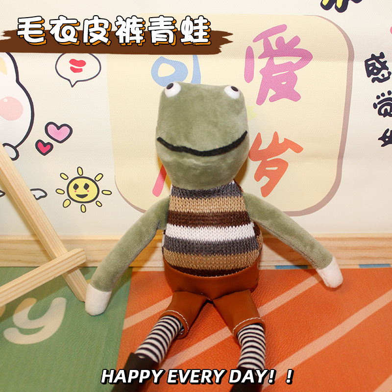 ネットの赤いセーターの皮のズボンのカエルの萌えのカエルの服はぬいぐるみの子供を飾って長い足のカエルのキーホルダーを掛けます。