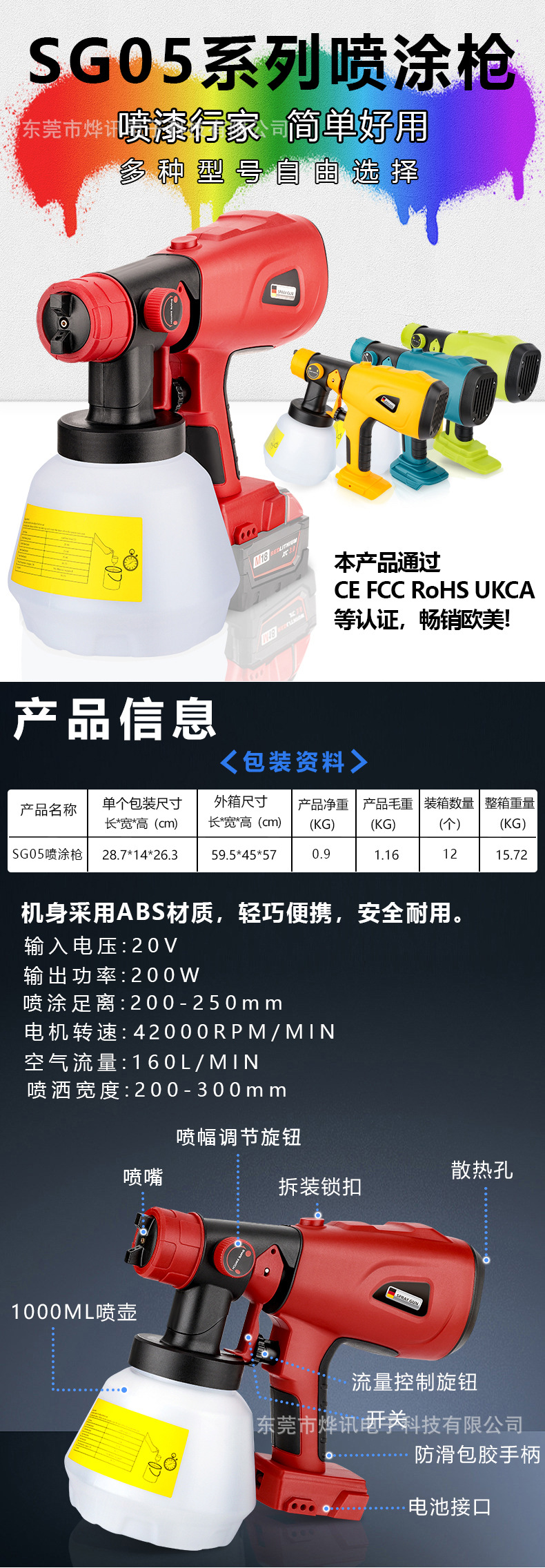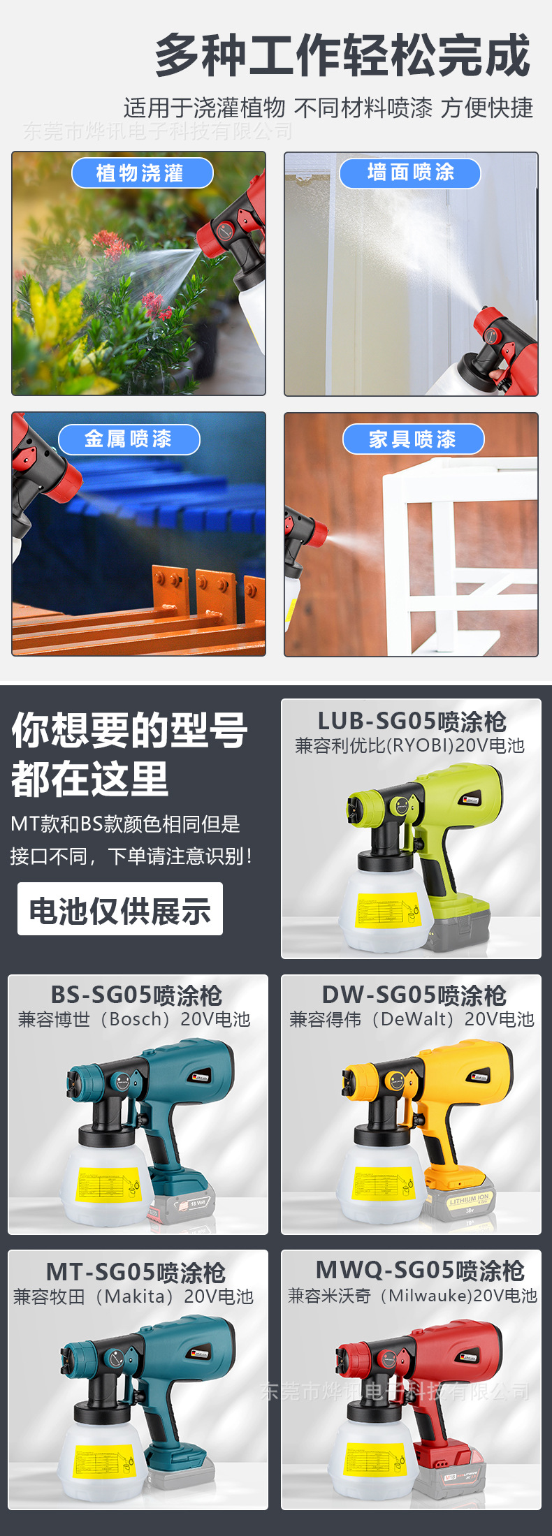 SG05スプレーガンは牧田博士の得偉米ウォチリユビなど18-20v電動工具リチウム電池を適用します。